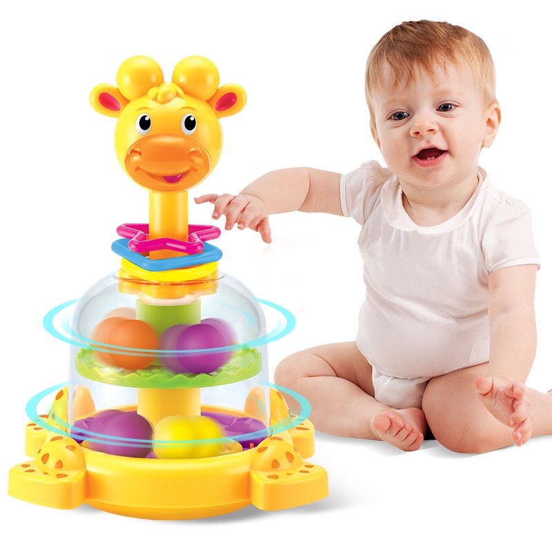 Giraffe Spinner Tumble Top Press and Spin Toy Spinning Top for Babies and Toddlers Mainan Spinner Balita For 6M+