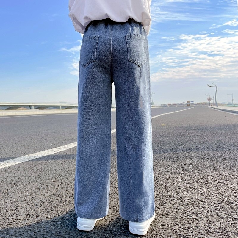 Girls' New Style Straight Jeans Spring Autumn Loose Wide Leg Pants Jeans Slim-Fit Denim Flared Trousers Suitable For 3-13 Years Old Girls Wear Pants