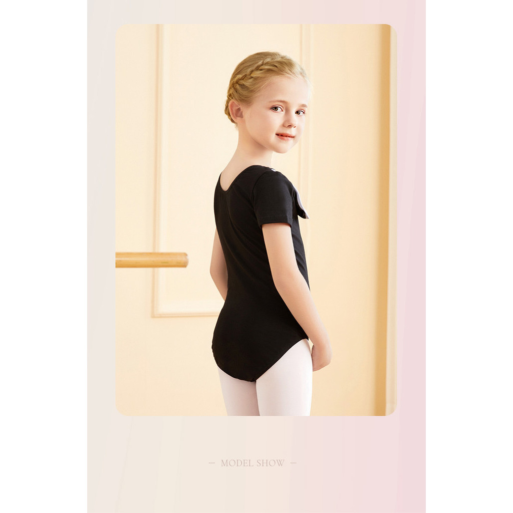 Girls Cotton Butterfly Collar Leotards Short Sleeves Cute Toddlers Children Dance Costume for Ballet Gymnastics