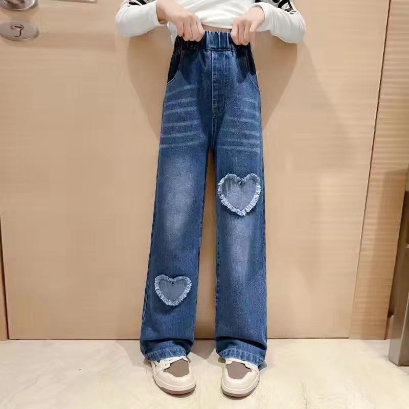 Girls Girls' Jeans Wide-Leg Pants Spring Autumn Versatile Middle-Large Children's Stretch Denim Straight-Leg Little Fashion Casual Trousers