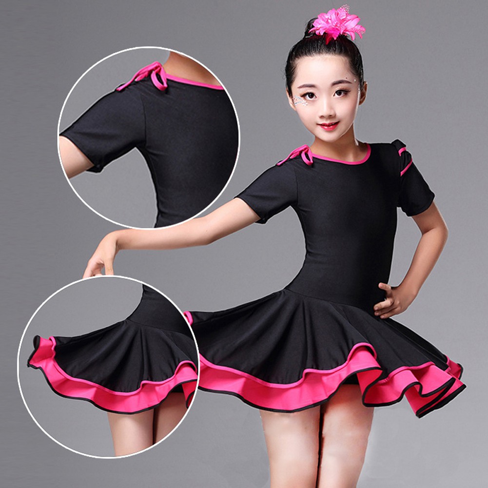 Girls Latin Rumba Dance Dress Flamenco Tango Ballroom Dancing Wear Stage Performance Costume