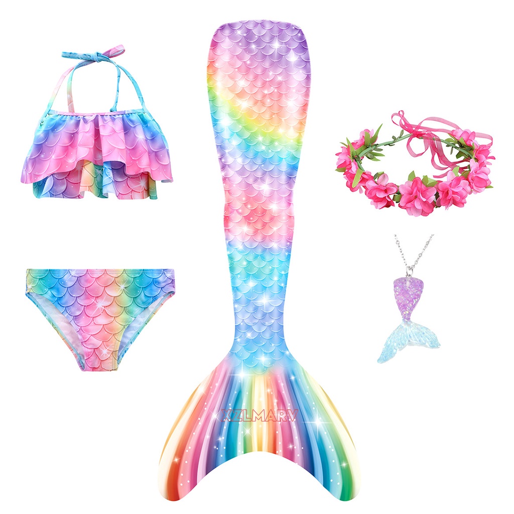 Girls Swimmable Mermaid Tail Costume Cosplay Swimsuit Halloween Dress set