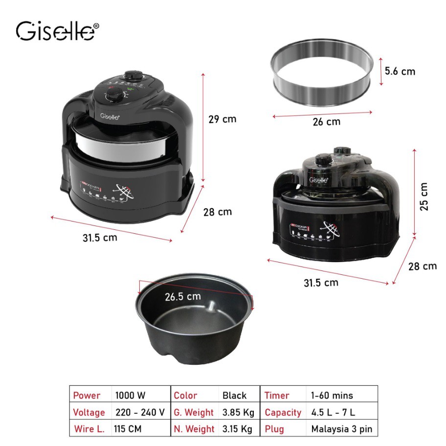 Giselle Air Fryer with Glass Lid and Extender Ring (1000W/7L) KEA0320