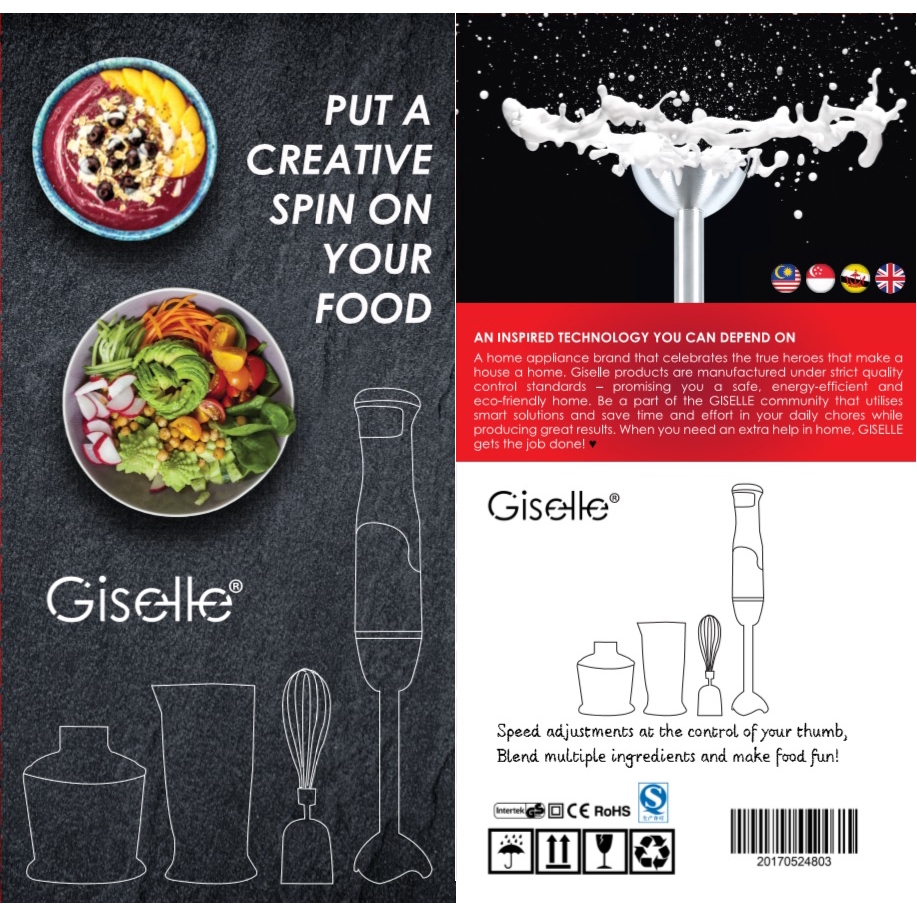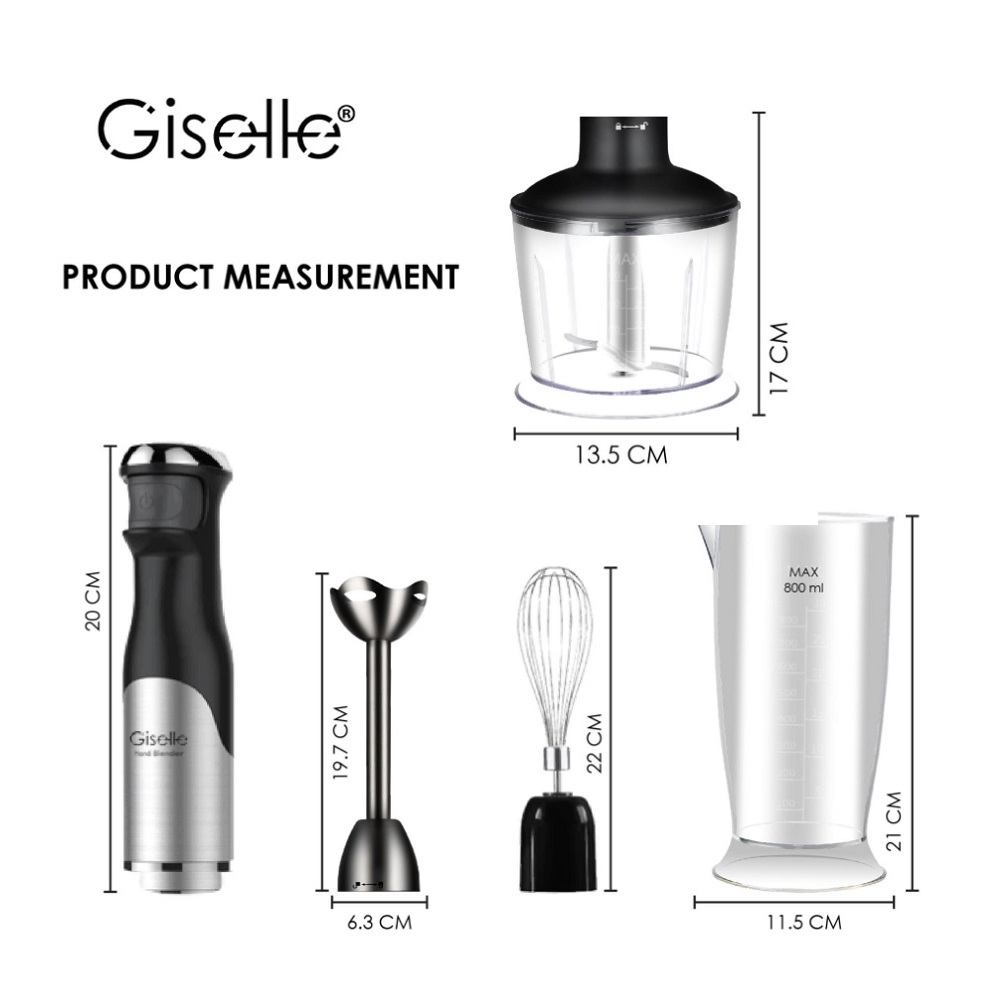 Giselle Hand Blender Set with Malaysia Plug 850W Food Processor Blender & Whisk (KEA0115)