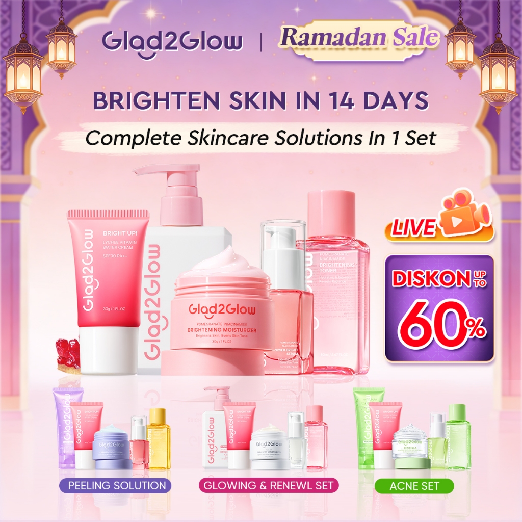 Glad2Glow 5PCS Skincare Set Moisturizer,Sunscreen,Cleanser,Serum,Toner Brightening|Repairing Barrier|Acne|Fading Spots