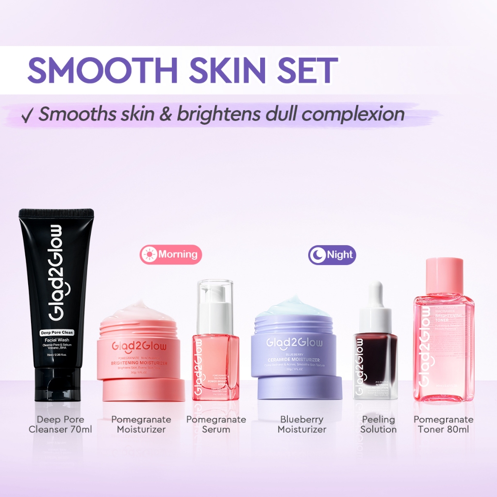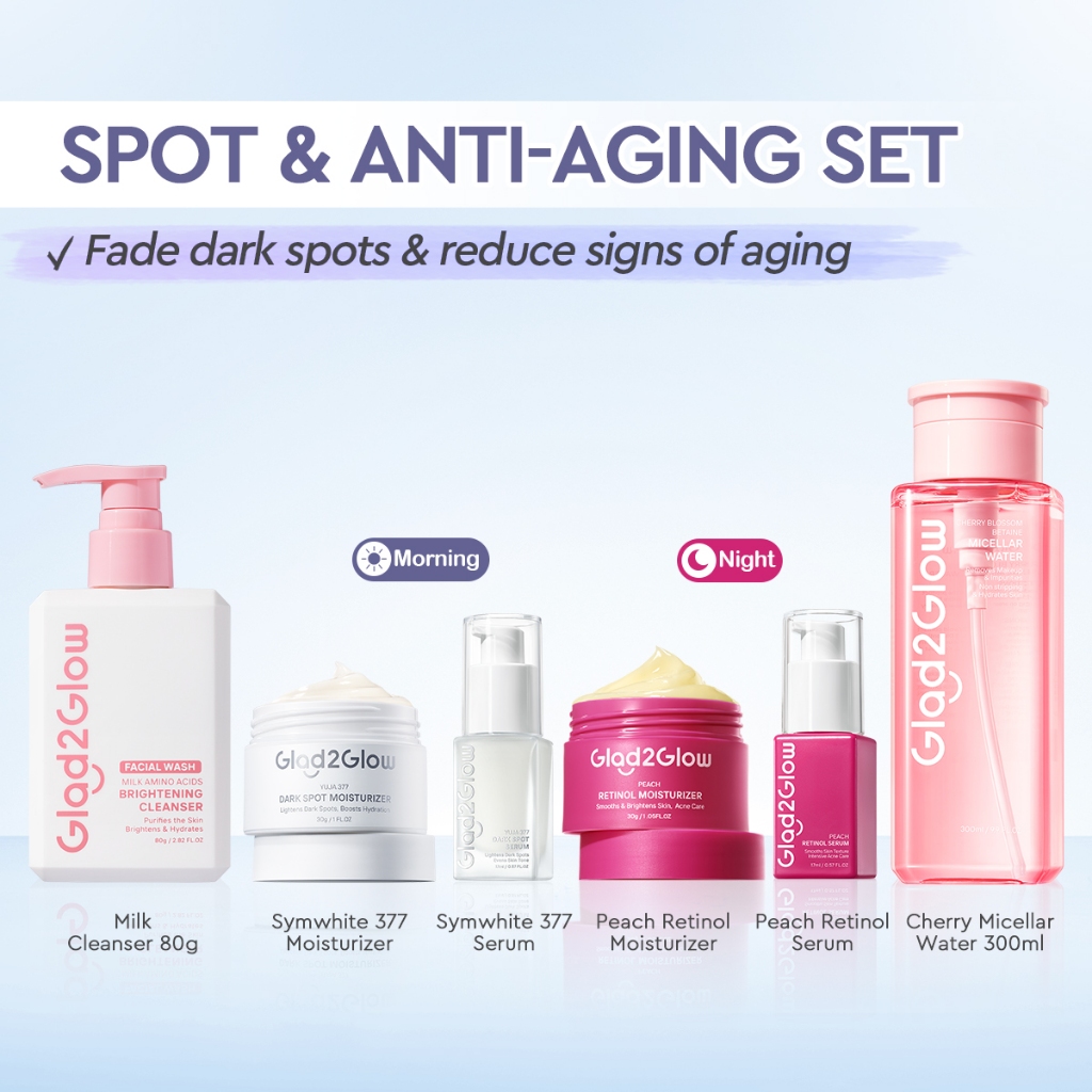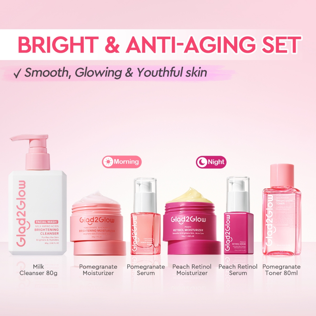 Glad2Glow 6In1 Skincare Set With Moisturizer+Toner+Serum+Cleanser+Micellar Water Brightening Repair Acne Face Skin Care