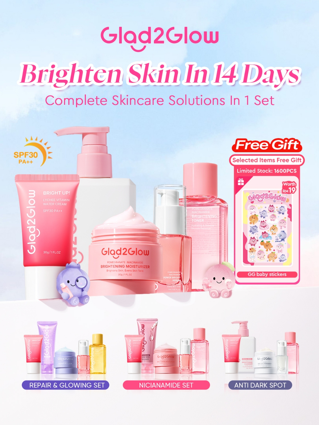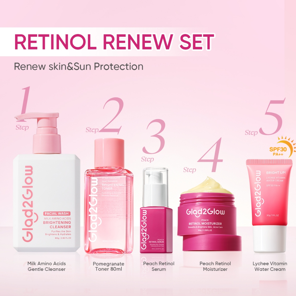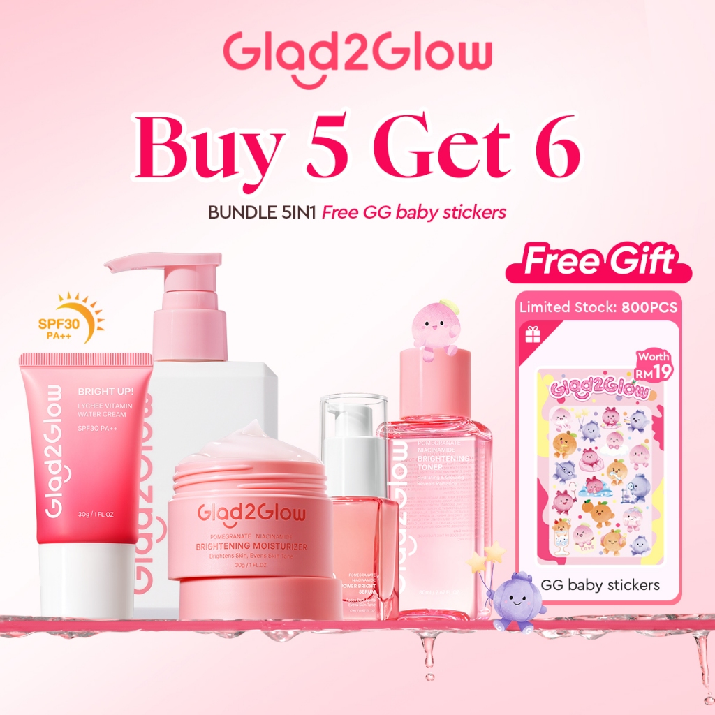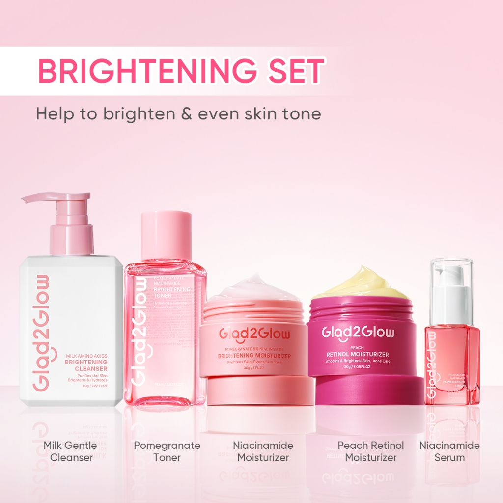 Glad2Glow 5PCS Skincare Set Moisturizer,Sunscreen,Cleanser,Serum,Toner Brightening|Repairing Barrier|Acne|Fading Spots