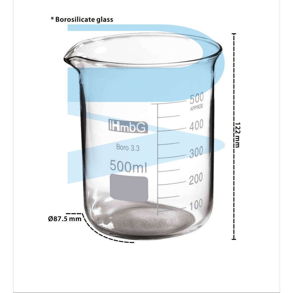 Glass Beaker | Bikar Kaca, Low Form (50-1000ml), HmbG