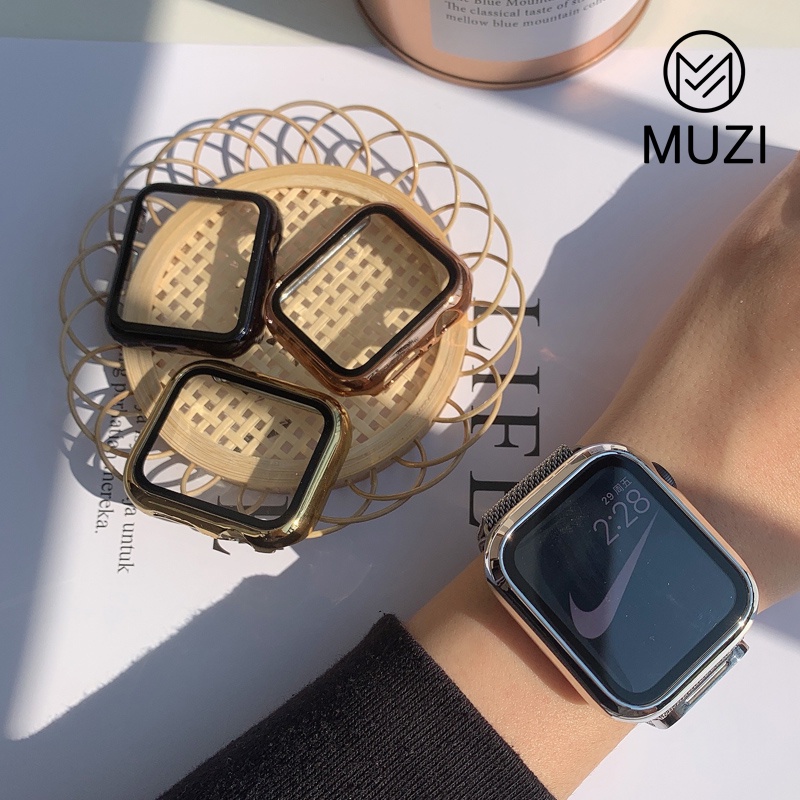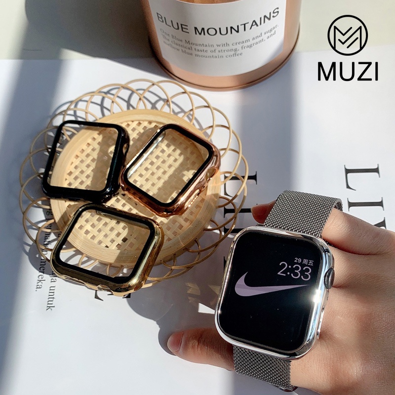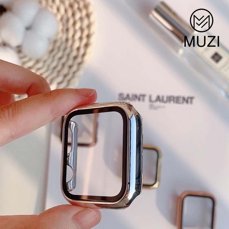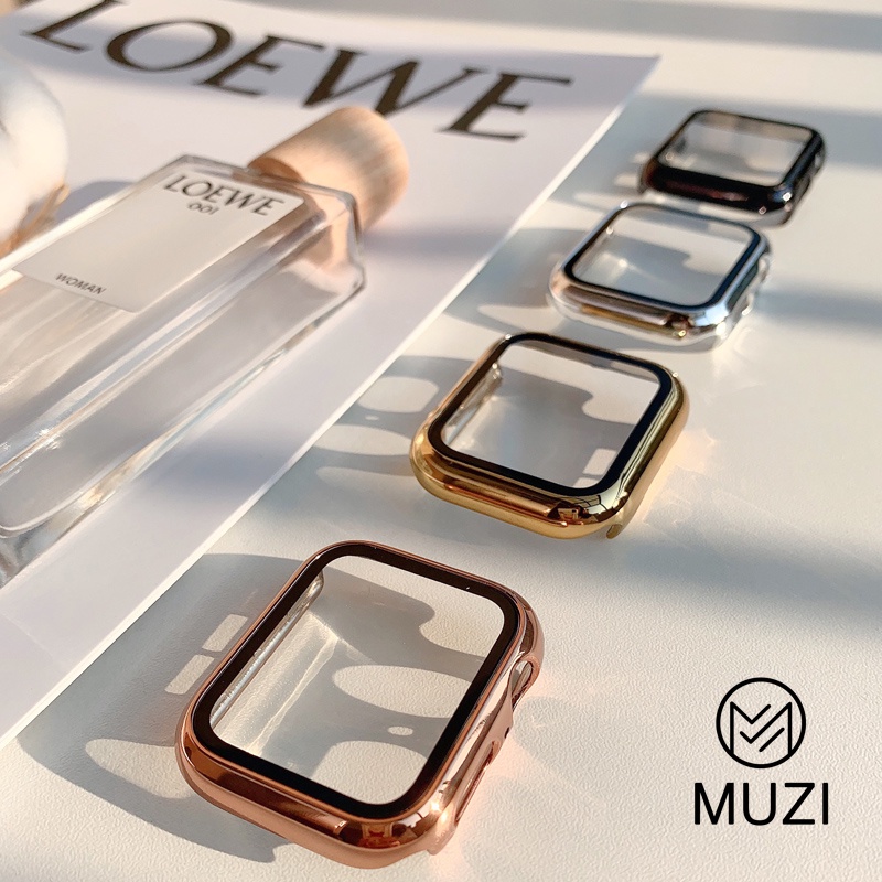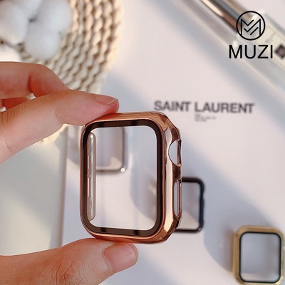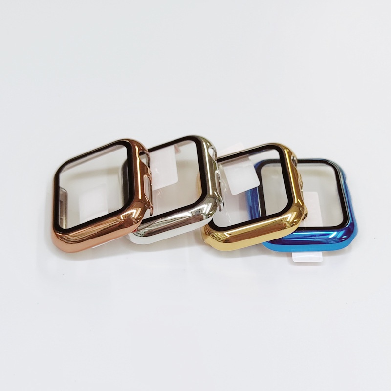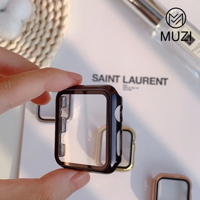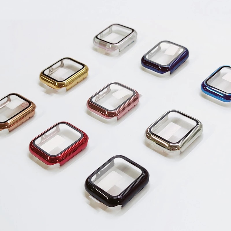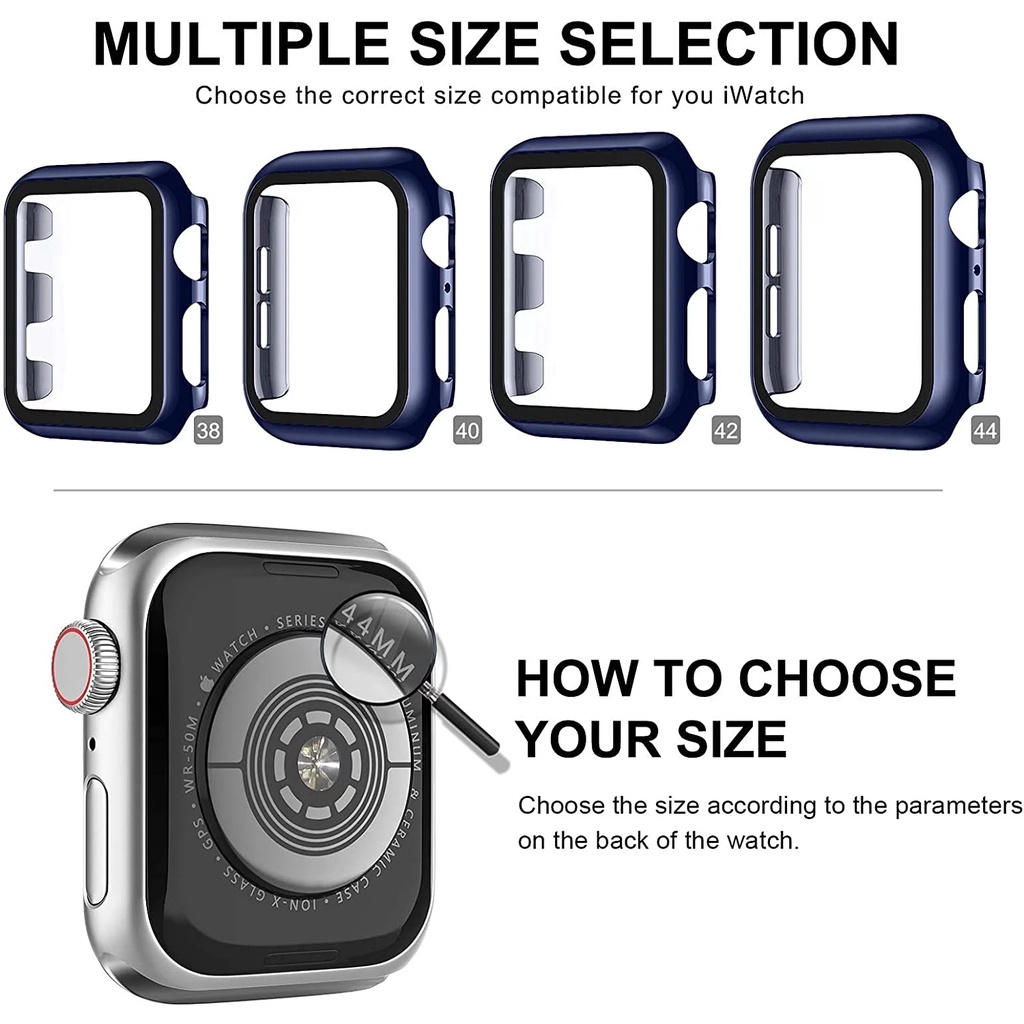 Glass+Case Full Cover For Apple Watch Case Series 7 6 SE 5 4 3 2 iWatch Case Accessor 45mm 41mm 44mm 40mm 42mm 38mm Protector Cover HD Tempered glass Plating case cover