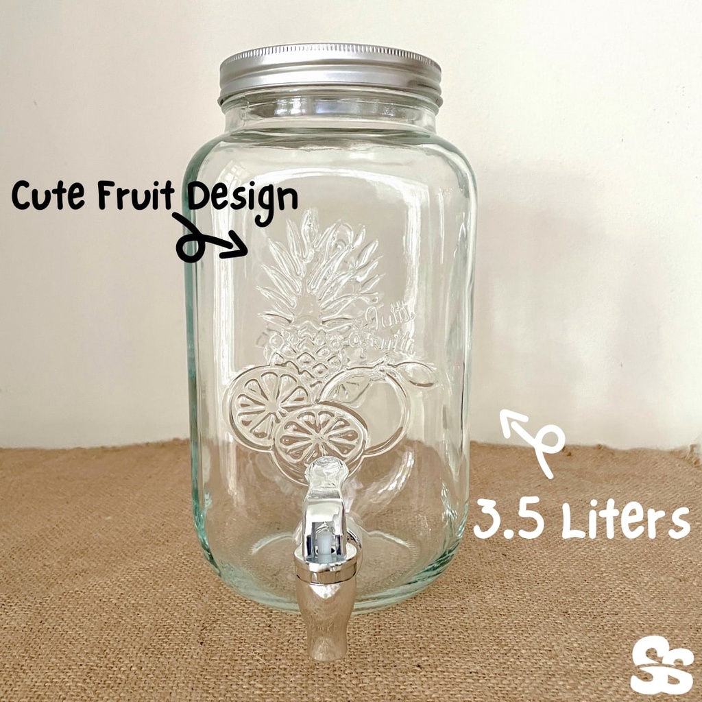 Glass Dispenser 3.5 liter - jug, water dispenser, beverage, party, picnic, juice, laundry, detergent, korean ins