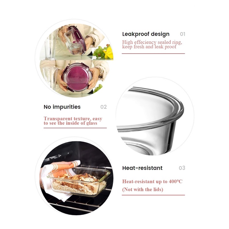 Glass Food Storage Containers with Lids, Glass Lunch Box, Glass Bento Box Lunch Containers, Portion Control, Airtight