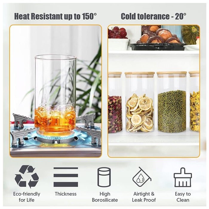 Glass Kitchen Canisters with Airtight Bamboo Lid Cookie Jar Glass Storage Jars for Kitchen