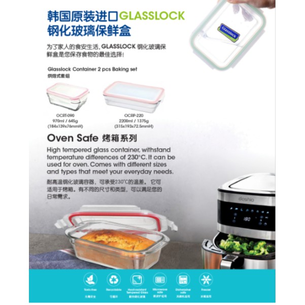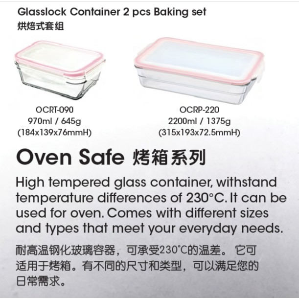 GlassLock : Oven Safe Rectangular 2200 and 970ml