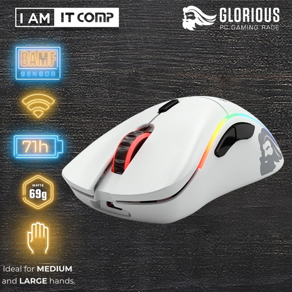 Glorious Model D / Model D Minus Wireless Gaming Mouse / BAMF sensor / 19000 DPI / Full RGB (Matte Black / Matte White)