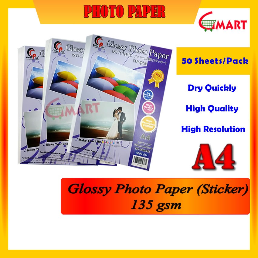 Glossy Photo Paper (STICKER) A4 135gsm (50 sheets)