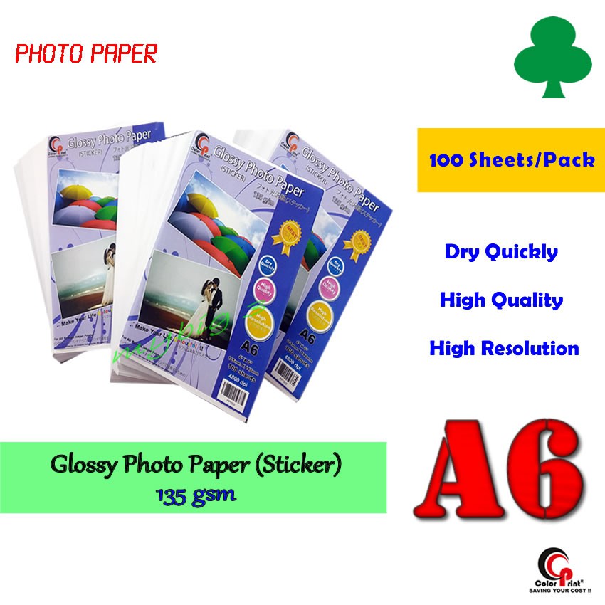 Glossy Photo Paper (STICKER) A6 135gsm (100 sheets)