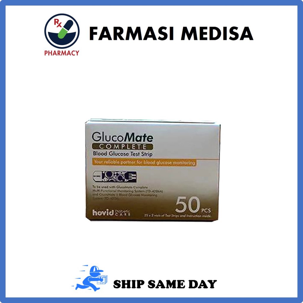 Glucomate Complete Blood Glucose Test Strip 50pcs | Farmasi Medisa