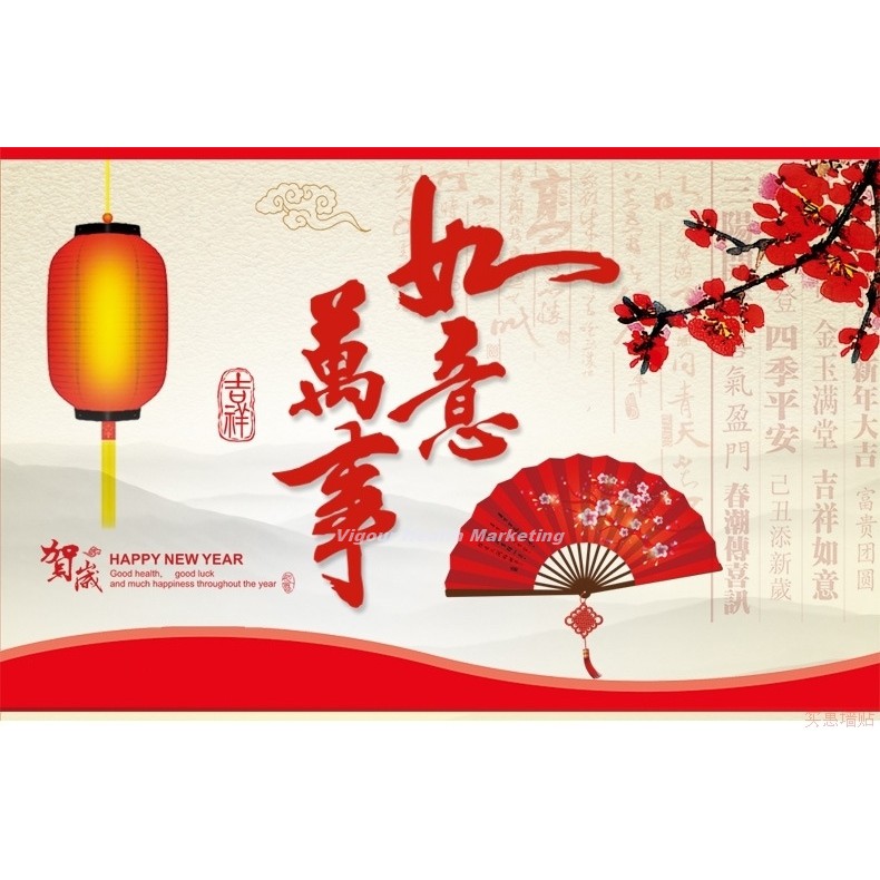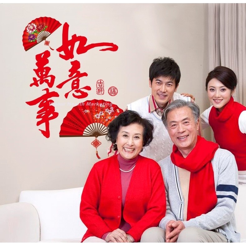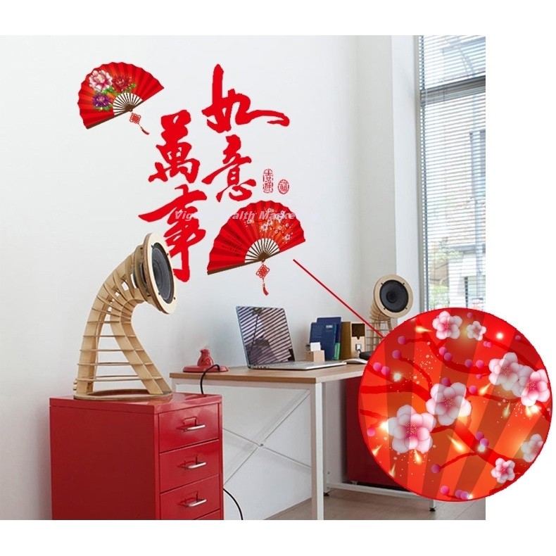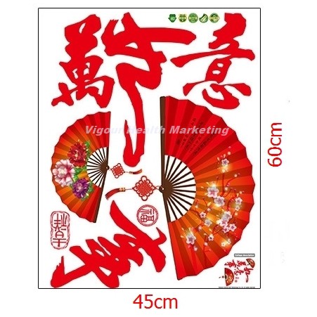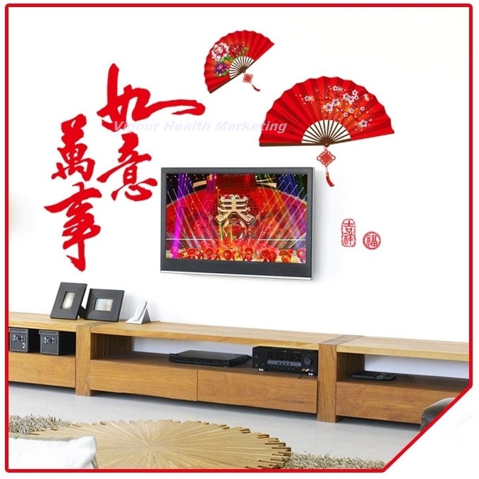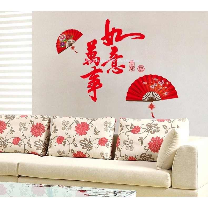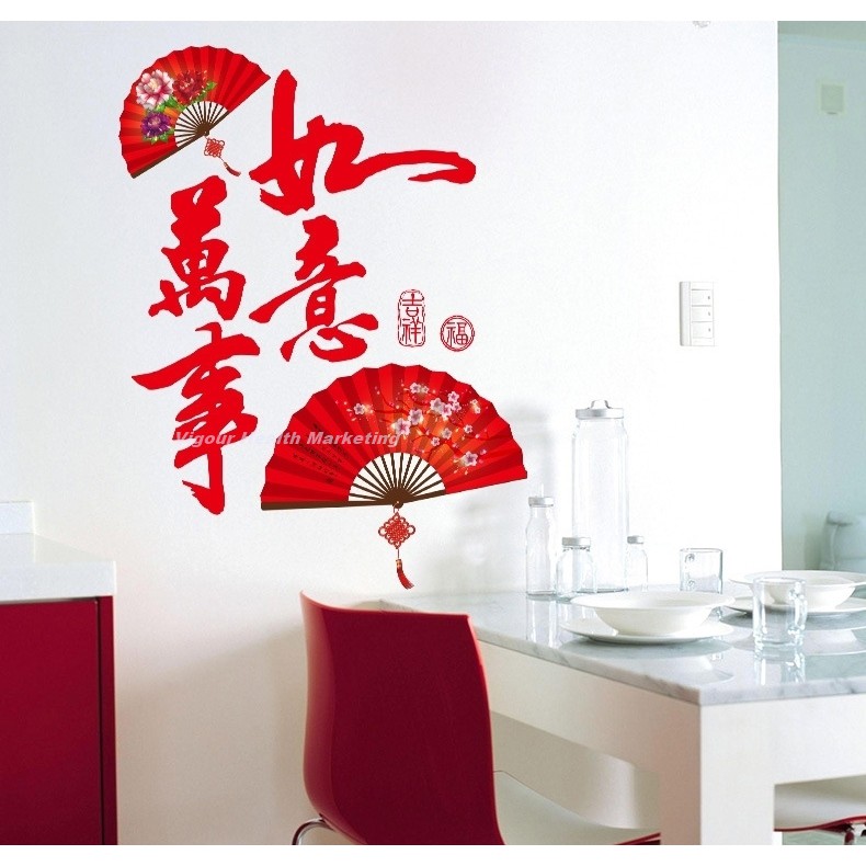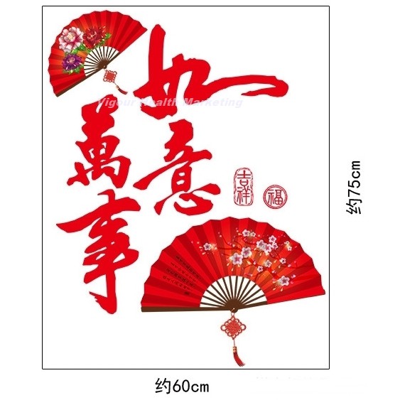 God Feng Shui Man Si Yu Yi And Beautiful Artistic Chinese Fan Wall Sticker
