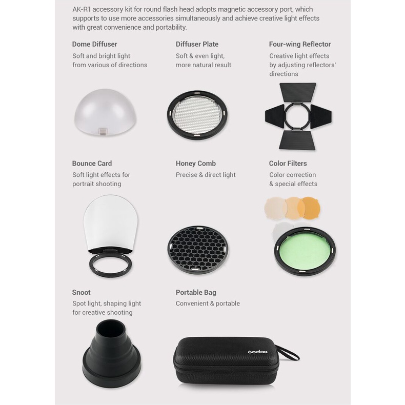 Godox S-R1 / AK-R1 Kit with Diffuser Dome Filter Holder Honeycomb Mesh for Godox AD200 AD200Pro H200R V1 Round Flash
