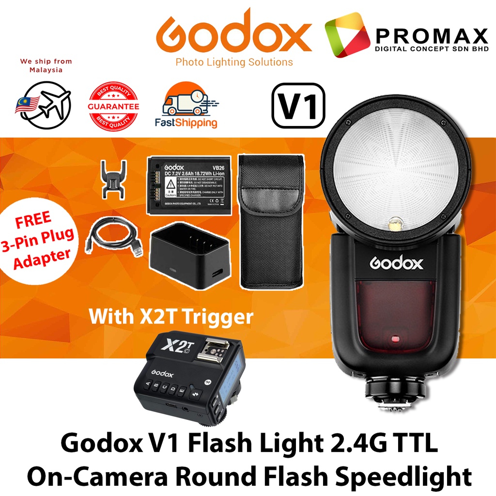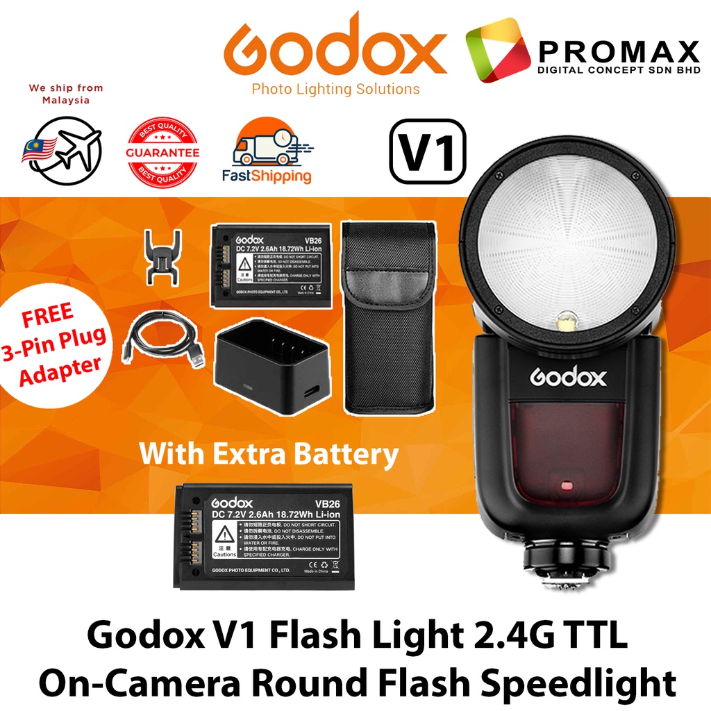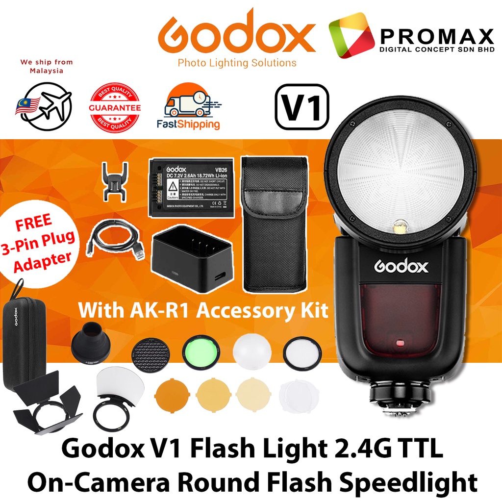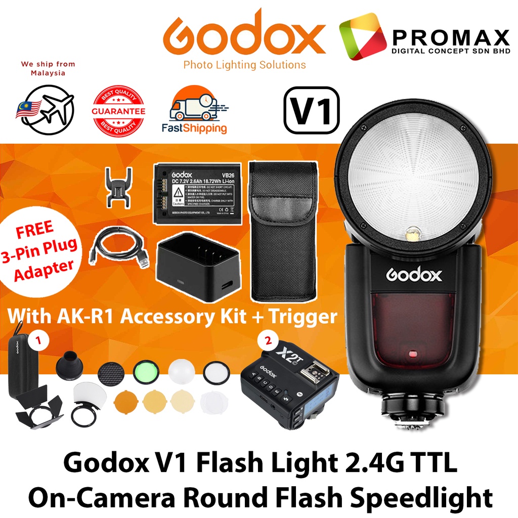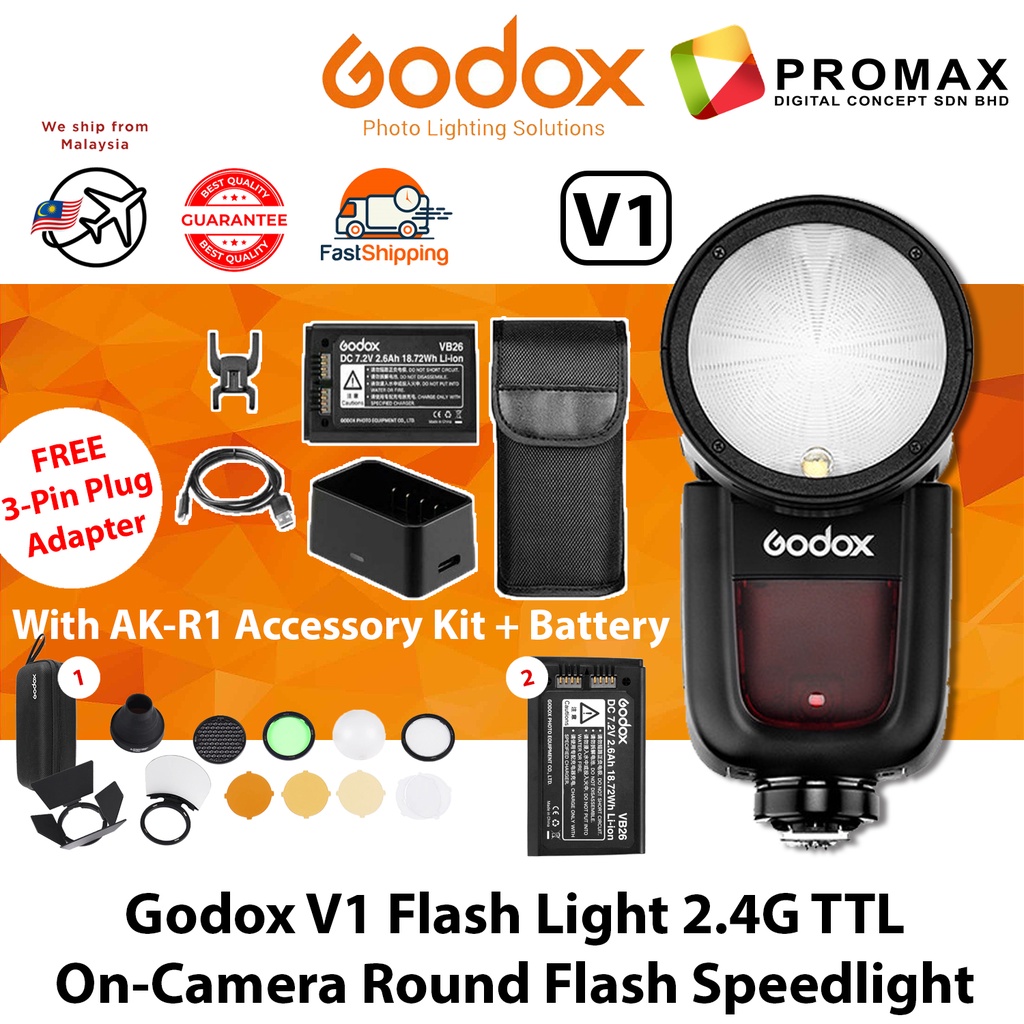 Godox V1 V1C CANON Flash Speedlight Round TTL Li-ion Battery AK-R1 VB26 X2T Trigger Accessory Kit