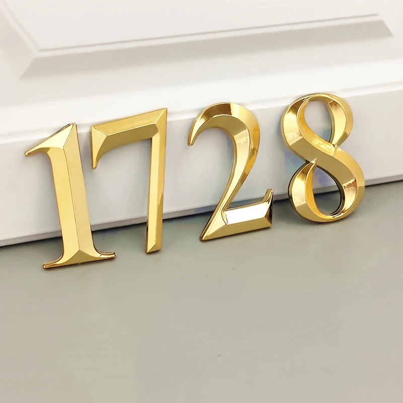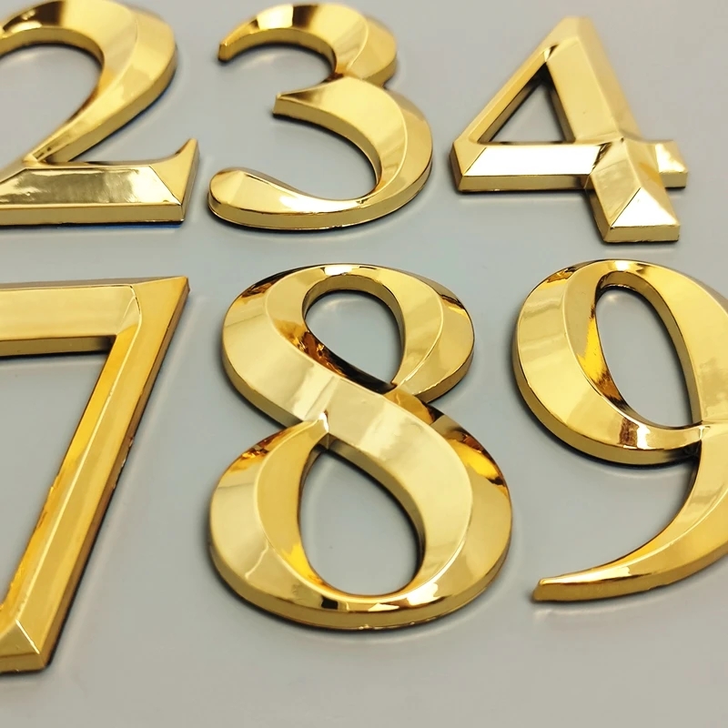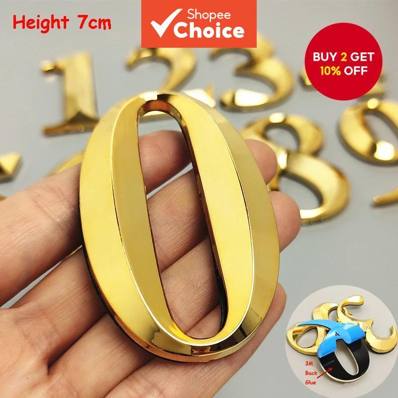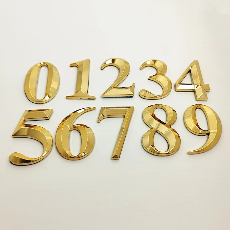 Gold 3D 7CM Self Adhesive House Number Sign Number Digit Apartment Hotel Office Address Street Number Stickers Door Plate Sign