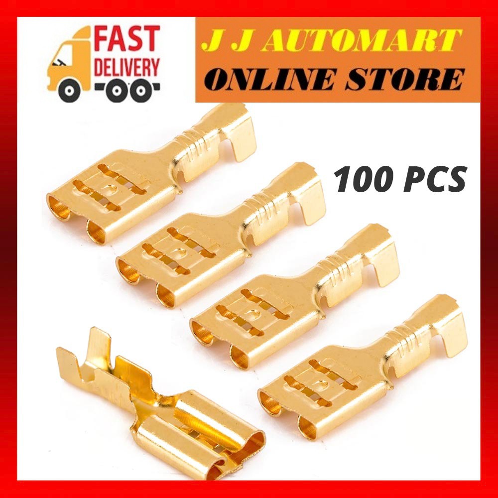 VORTEQ Gold Brass Terminal Wire Clip Wiring Car Speaker Female Spade Terminal Wire Connector(100PCS)