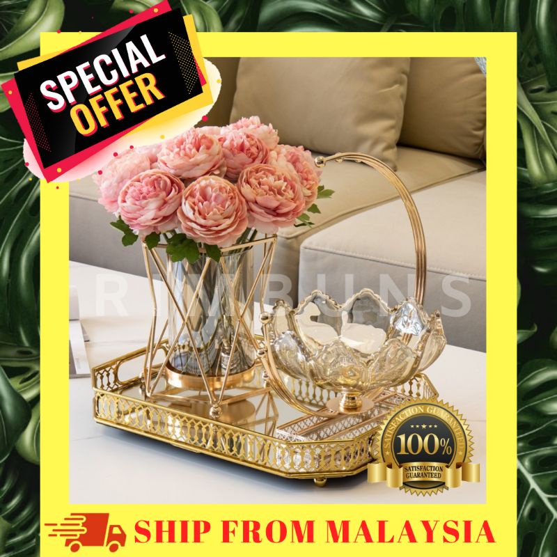 Gold Metal Vase Luxury Nordic Scandinavian Home Living Flower Decoration Pasu Emas Hiasan Bunga Dekorasi Ruang Tamu