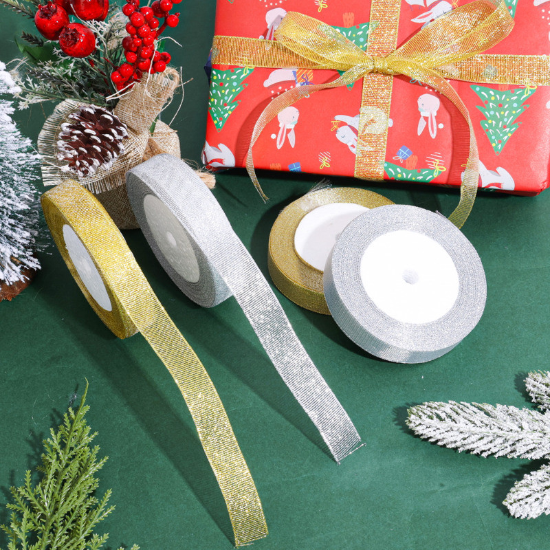 Gold Silver Glitter Silk Satin Ribbon - Gift Wrapping Ribbon - Christmas TREE Decorative Ribbon - DIY Craft Supplies - Glitter Organza Ribbon For Wedding Cake Decoration