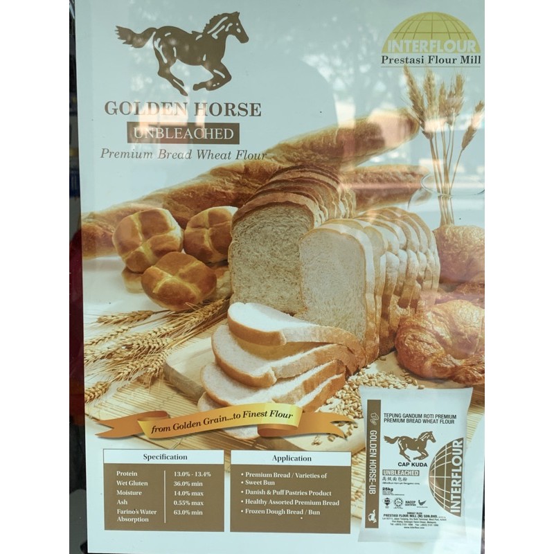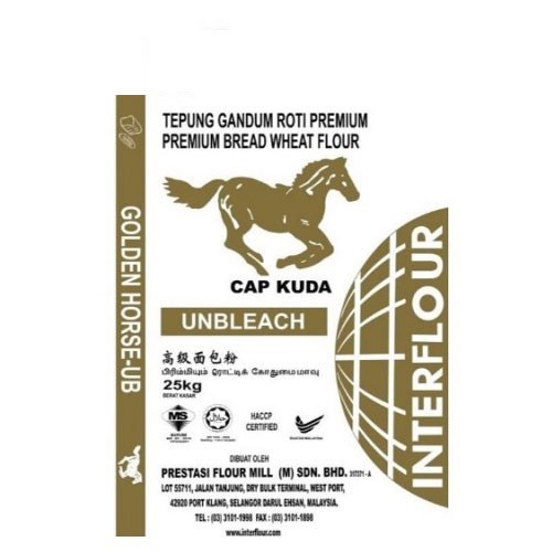 Golden Horse Premium Bread Wheat Flour High Protein Flour/ Cap Kuda Tepung Roti Gandum/ 高级面包粉(Unbleached) (1KG)