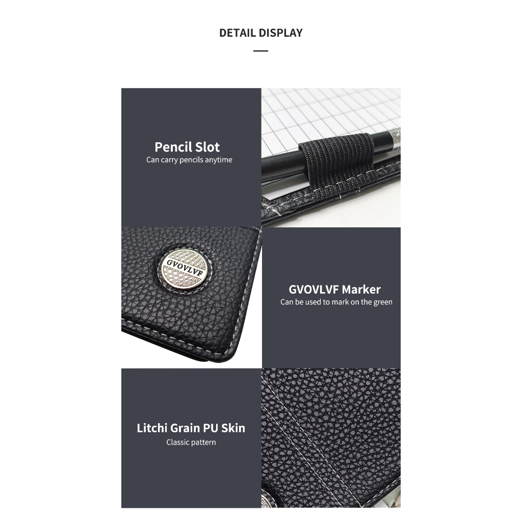 Golf Scorecard Holder with Golf Stat Tracker Sheet Premium Leather Golf Scorecard Book Golf Yardage Book Cover Gifts for Golfers