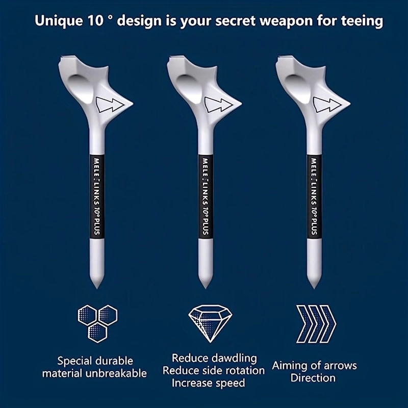 Golf Tees -10 degree Oblique Insertion Decrease Friction,Durable Plastic Golf Tees Designed to Enhance Golf Shot Distance & Precision- Robotically Tested to Reduce Ball Spin 10pcs