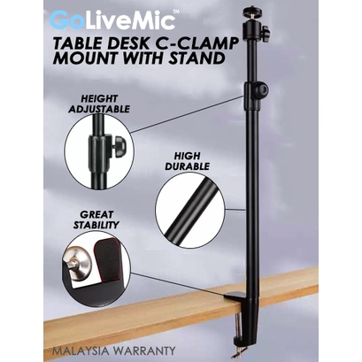 Golive Tabletop C-clamp Mount with Adjustable Aluminum Stand (FL-20) with 1/4 Screw Tip for DSLR , Handphone Holder