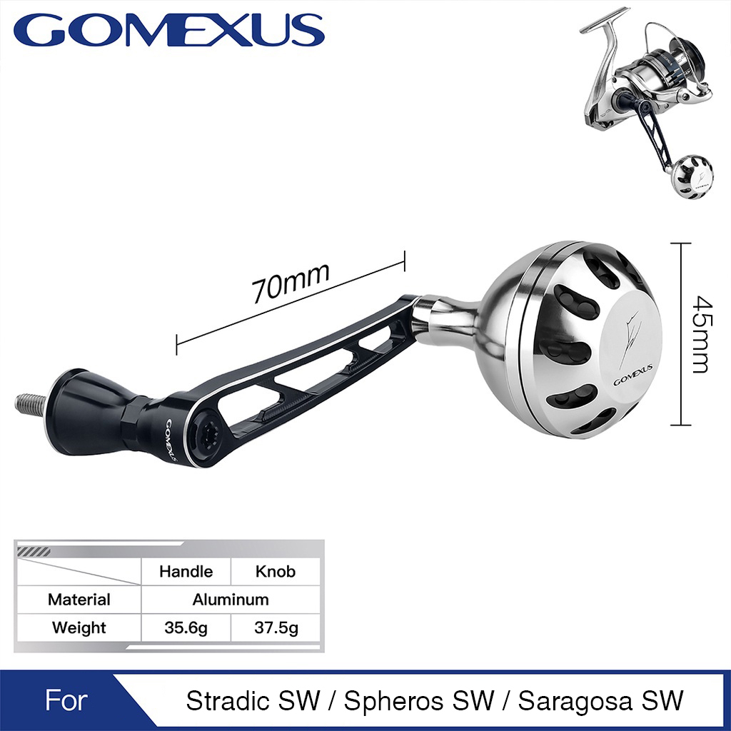 Gomexus Power Reel Handle with Titanium knob 70mm used For Shimano stradic SW saragosa Stella Twin power Saltwater Fishing reels LMY