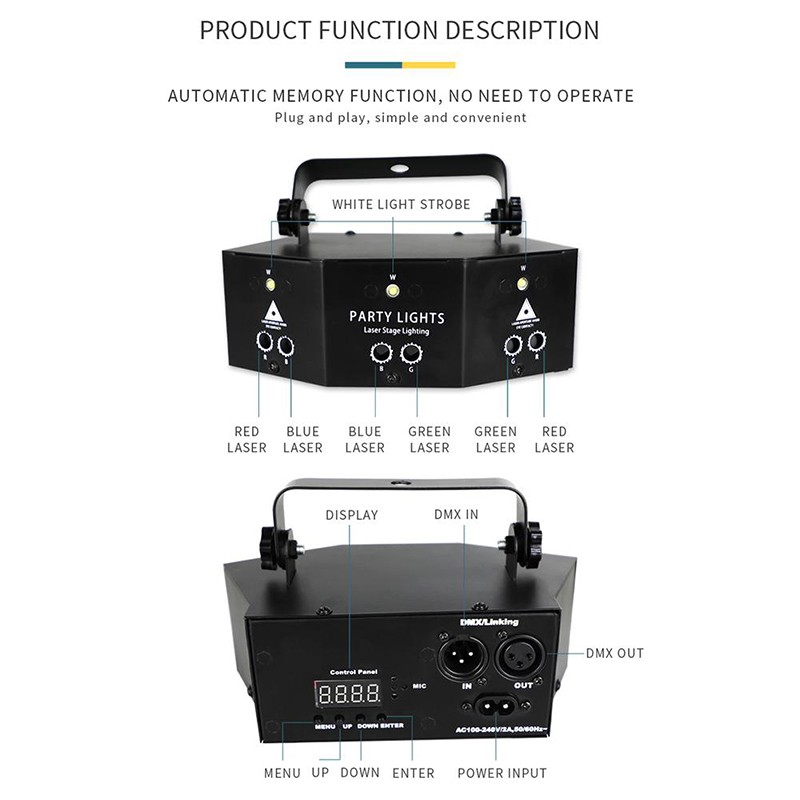 Good Effect DJ RGB Laser Strobe 2 In 1 Light 9 Eyes Image Lines Beam Scans Projector Laser Remote For Dance Bar Home Party Disco Effect Lighting