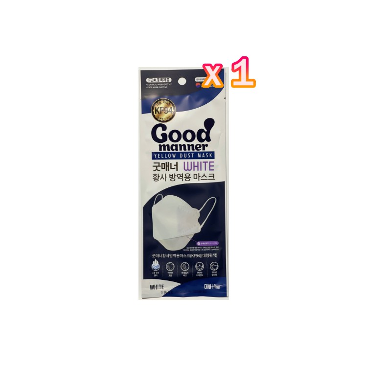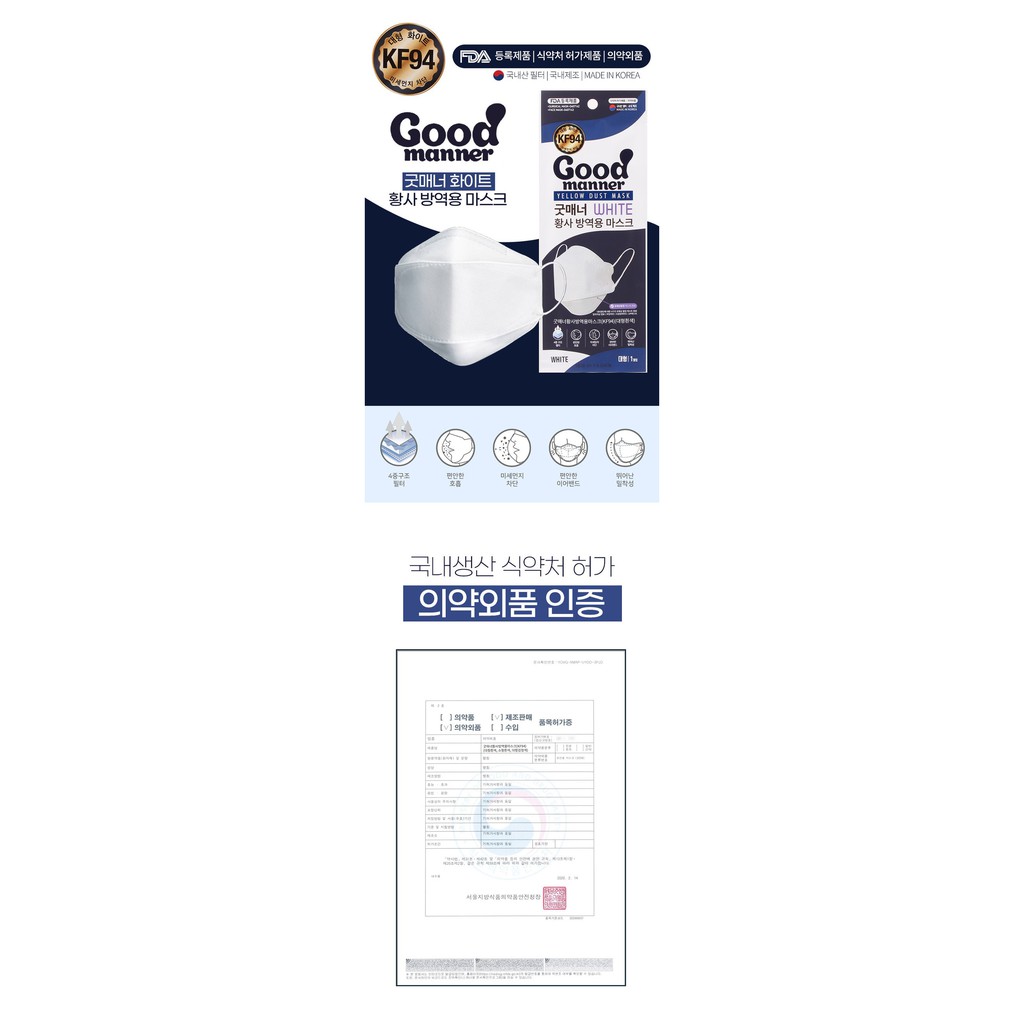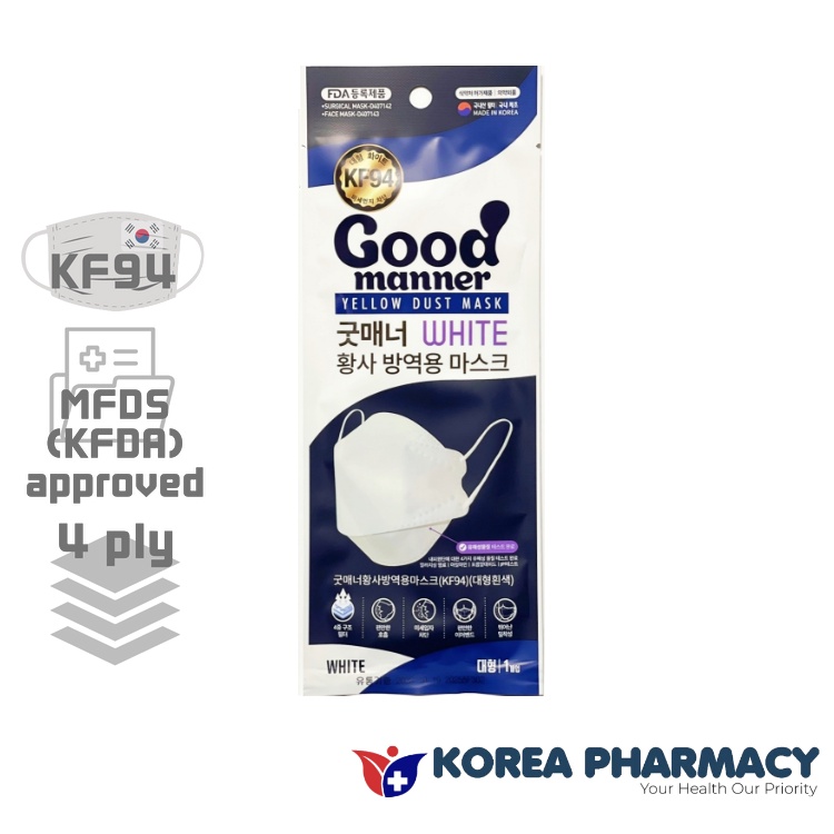 GOOD MANNER KF94 1pc face Mask for adult Made in Korea four thickened certified by Ministry of Food and Drug Safety Korea filter Ready Stock shipping from Korea