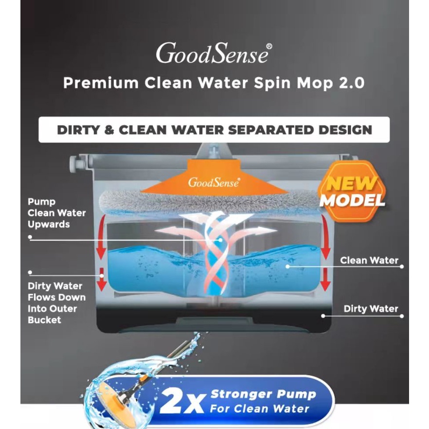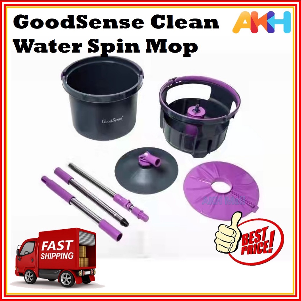 GoodSense Clean Water Spin Mop Water Separated Mop Quick Dry Microfiber Cloth Mop Lantai Mop Spinner Mop Set (Purple)