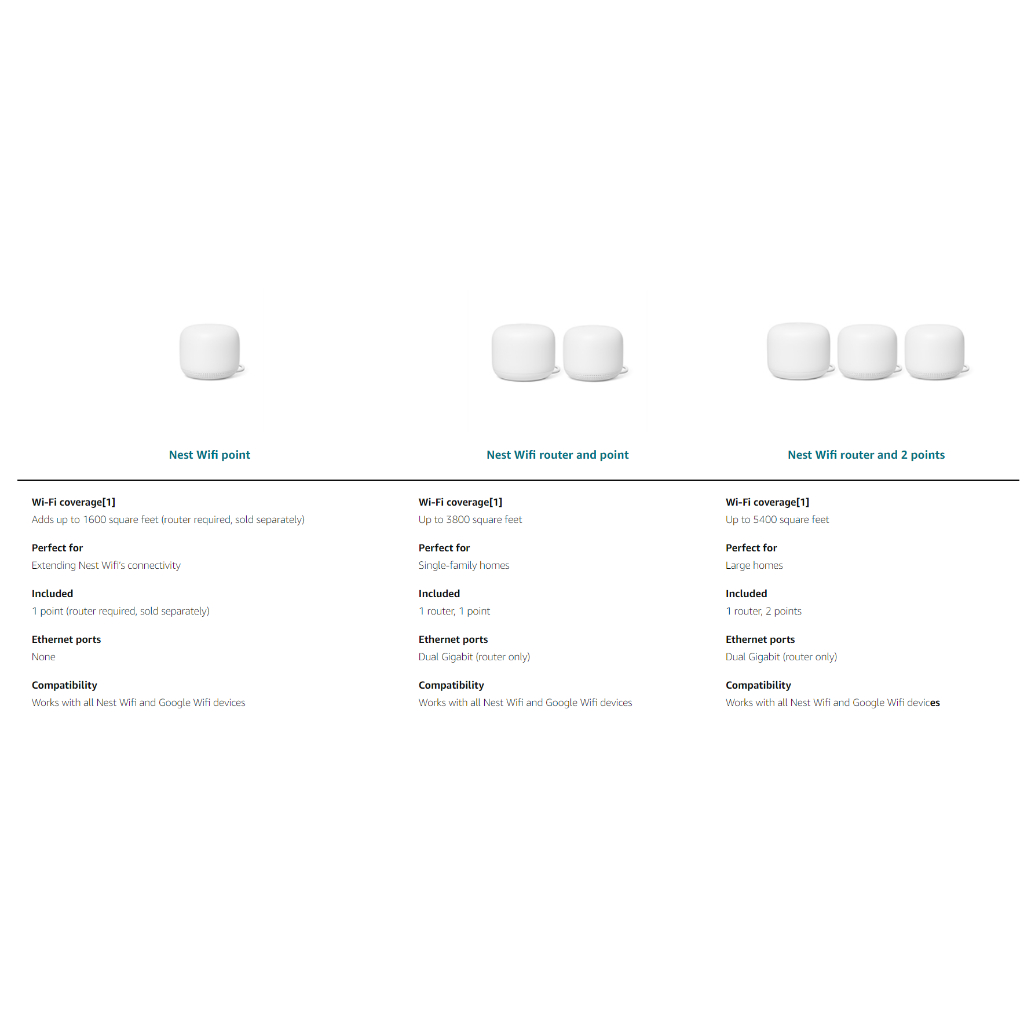 Google Nest Wifi 3 Packs (1 AC2200 Mesh Router + 2 Points)