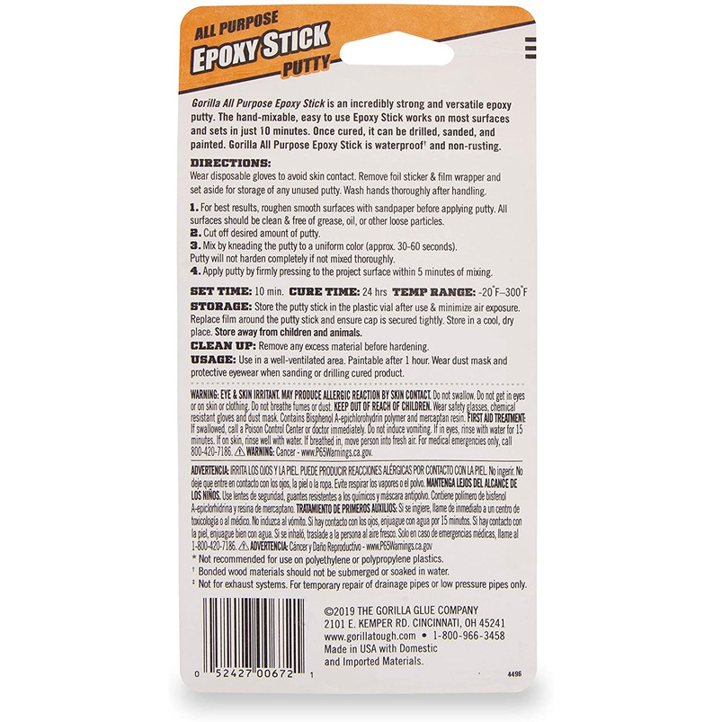 Gorilla Epoxy Putty Stick (2oz) 4242502