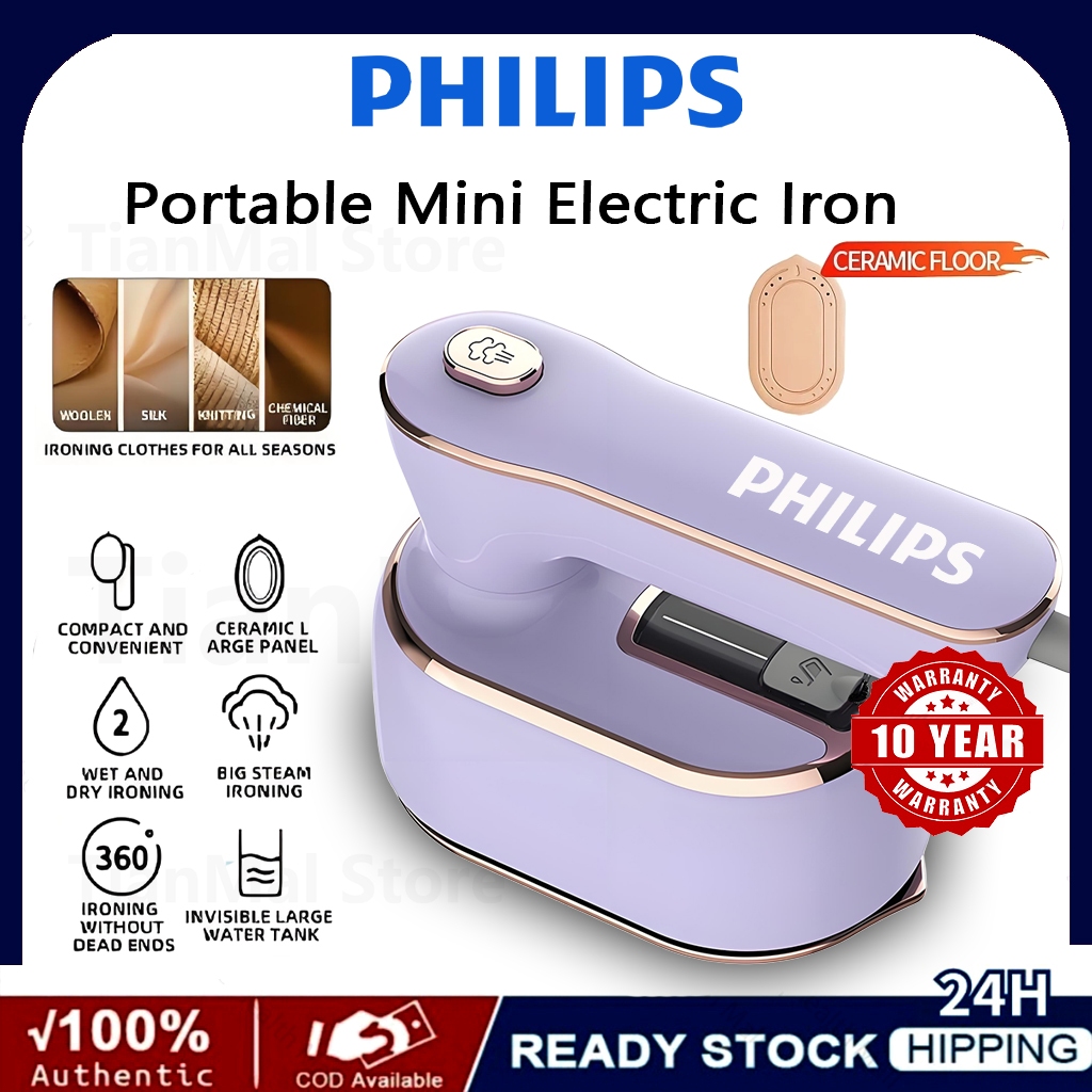 【10-year warranty】philips HX-6198 Steam Iron Mini 1200W Handheld Portable Rotatable Household Travel Steamer Iron