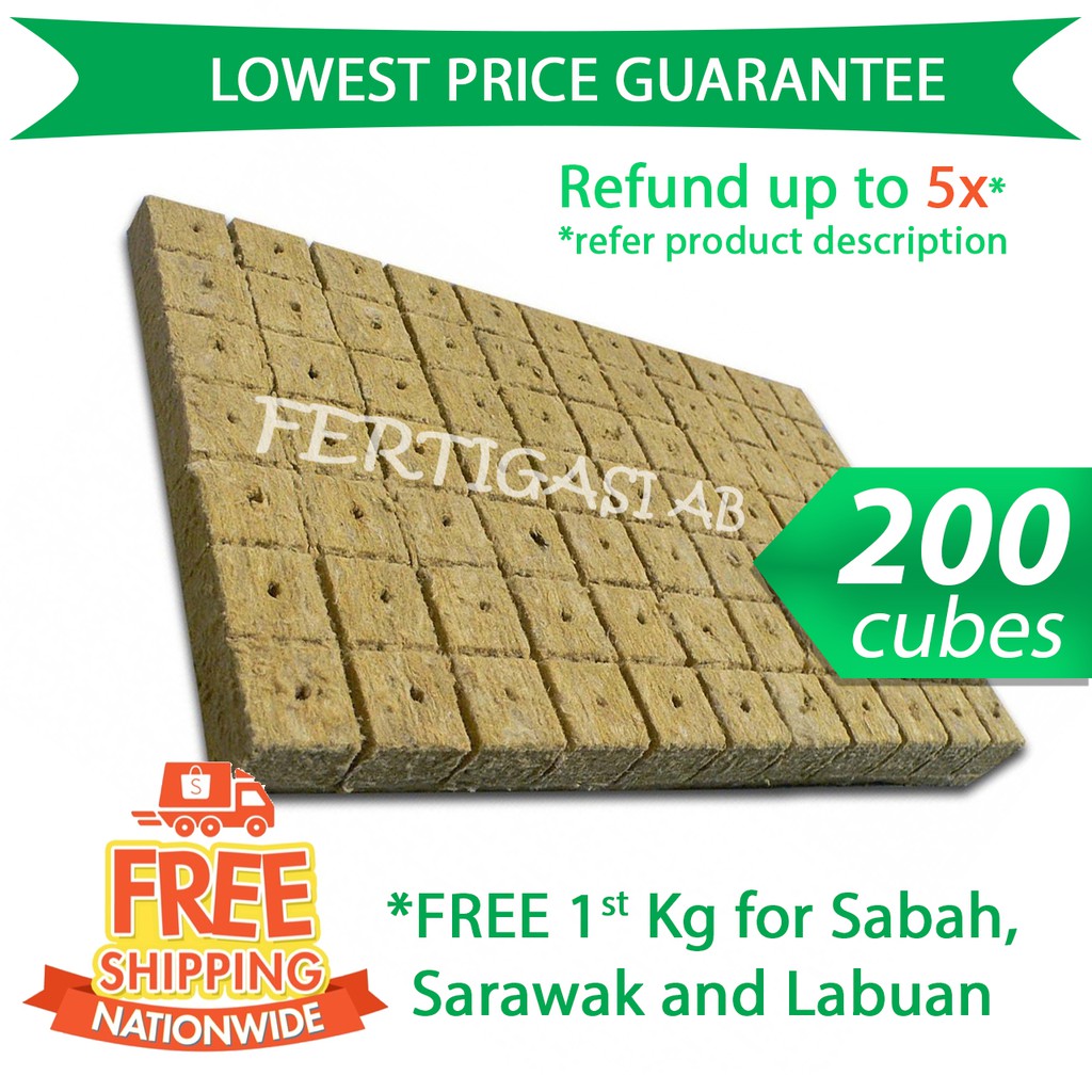 Grade A 200 cubes rockwool 3cmx3cmx4xm seedling semai benih hydroponic rock wool