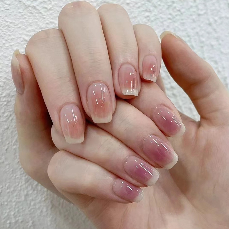 Gradient Blush Double Color Matching French Style Fake Nails Square False Nails 24 Pcs/box R526