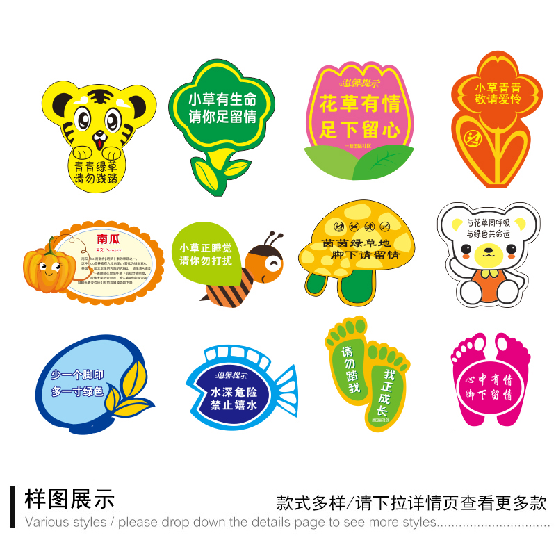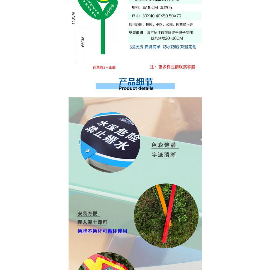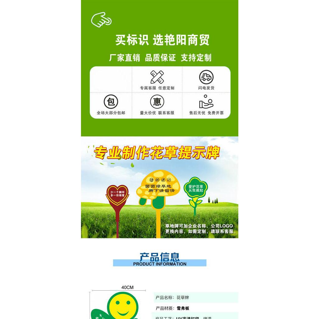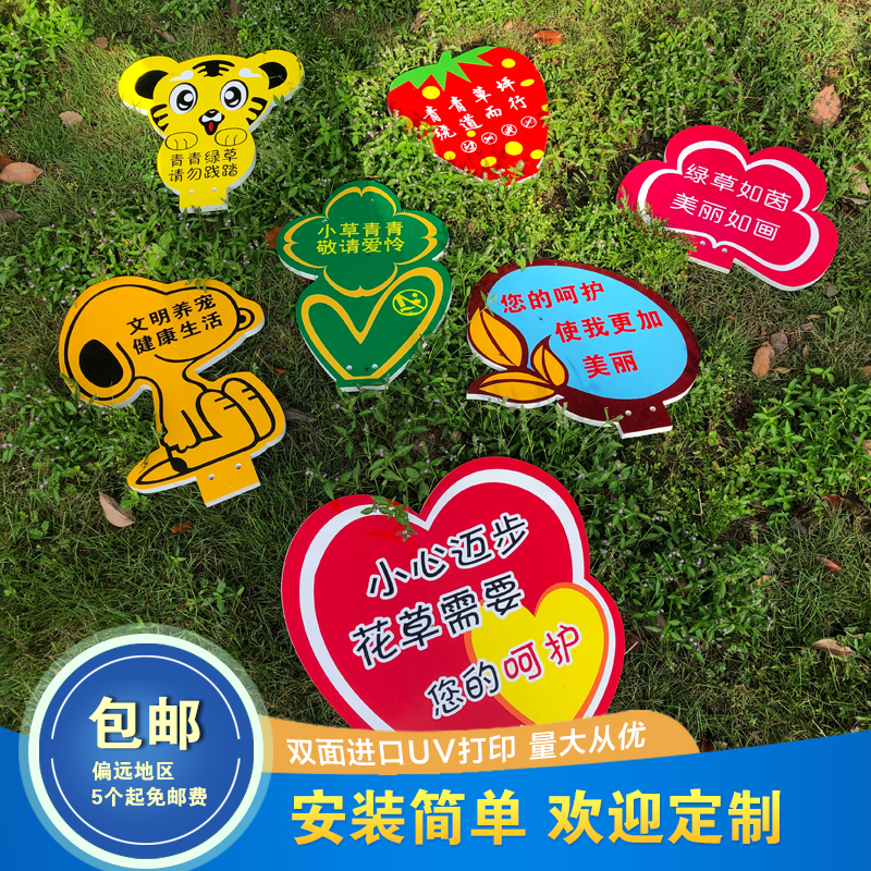 Grass & Flower Plate Slogan Sign Lawn Grass Outdoor Billboard Warning Sign Love Flowers and Plants Warm Notice Board