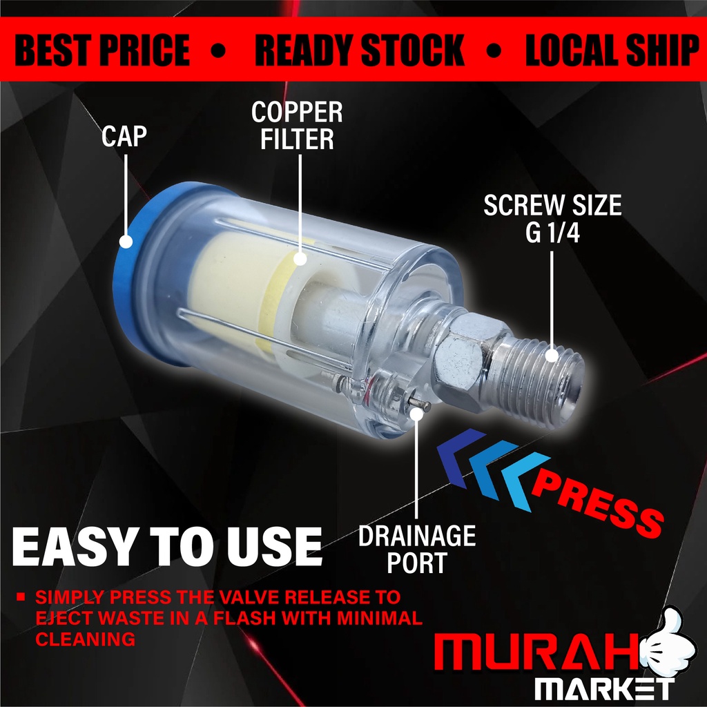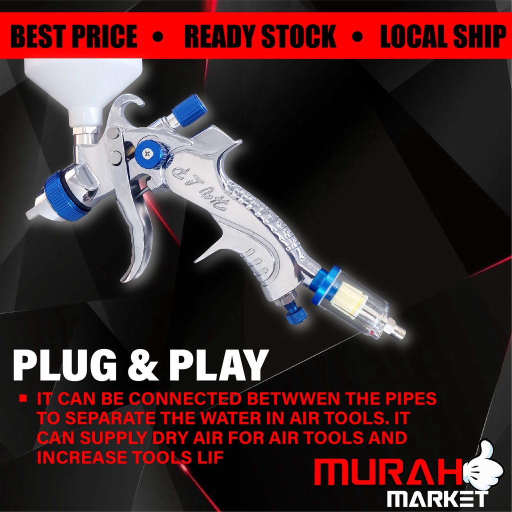 Gravity Feed Spray Gun 1/4" Air Regulator Filters Oil Water Trap Moisture Separator Air Compressor HVLP Pneumatic Gun