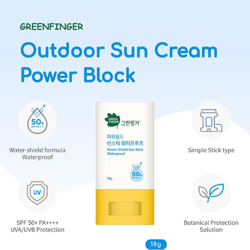 Green Finger Power Shield Sun Stick 14g, 18g SPF50+ PA++++ | Waterproof Mineral Sunscreen for Kids & Babies