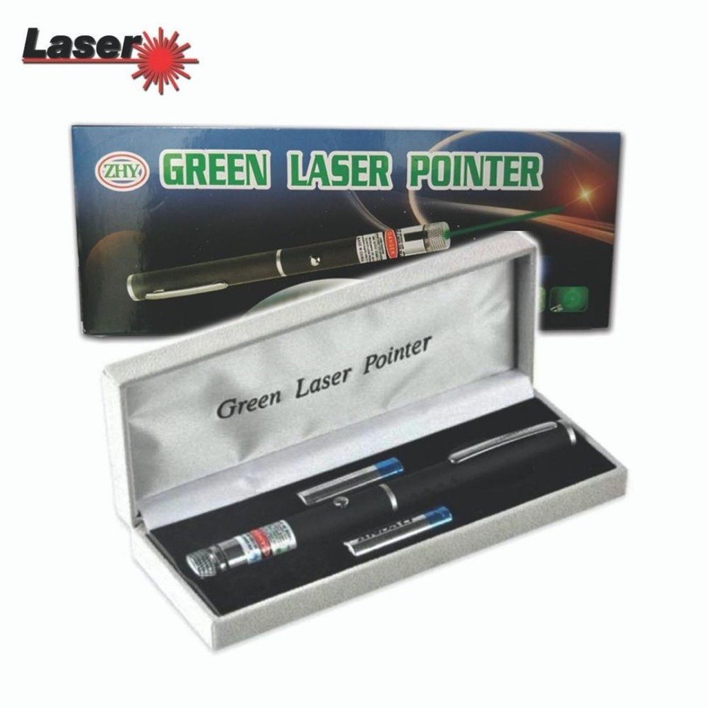 Green Laser Pen Pointer - Wireless (Battery Operated)/Adjustable Long Range High Beam/Free Foldable Box & Battery