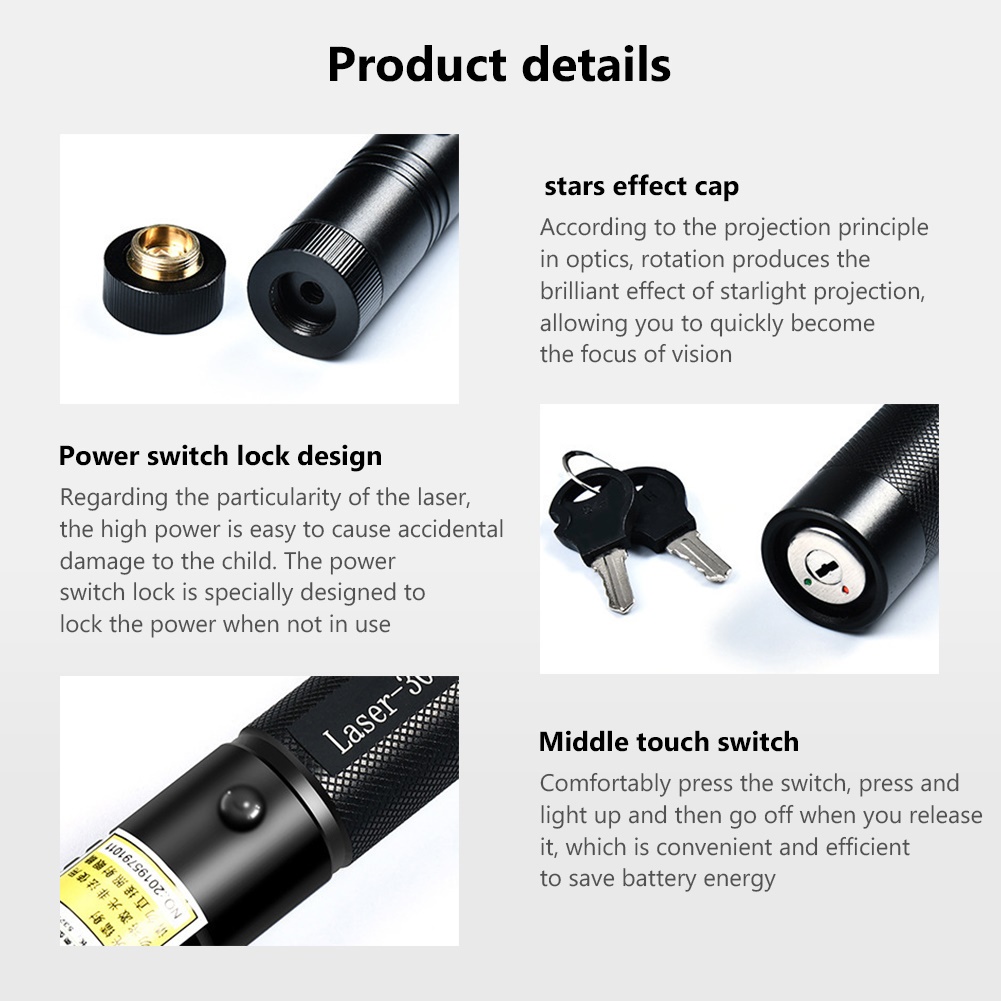 Green Laser Pointer Pen High Power Adjustable Focus Charging Battery Laser Flashlight Presentations and Long-Range 激光笔