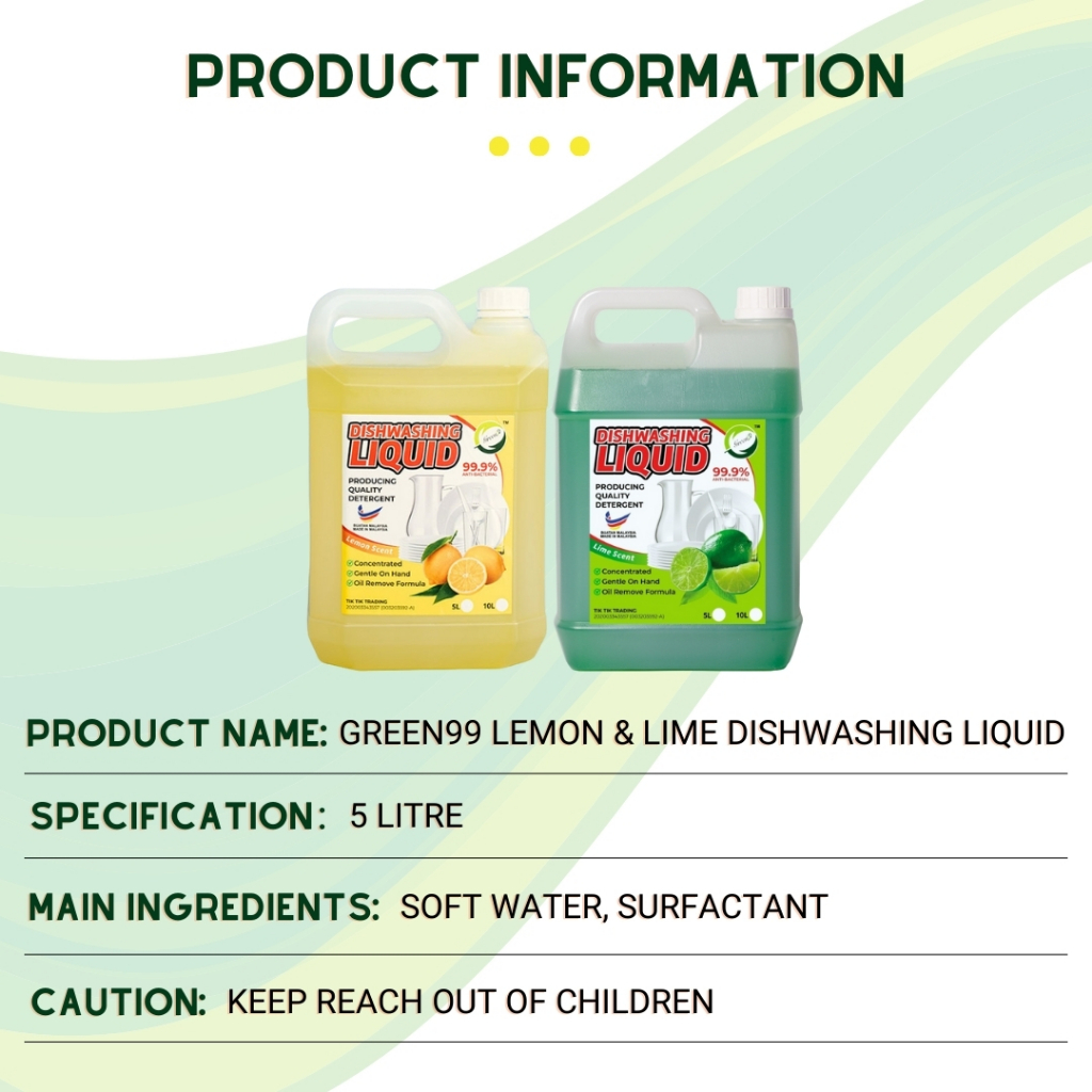 Green99 Lemon & Lime Oil Removal Dishwashing Liquid 5L