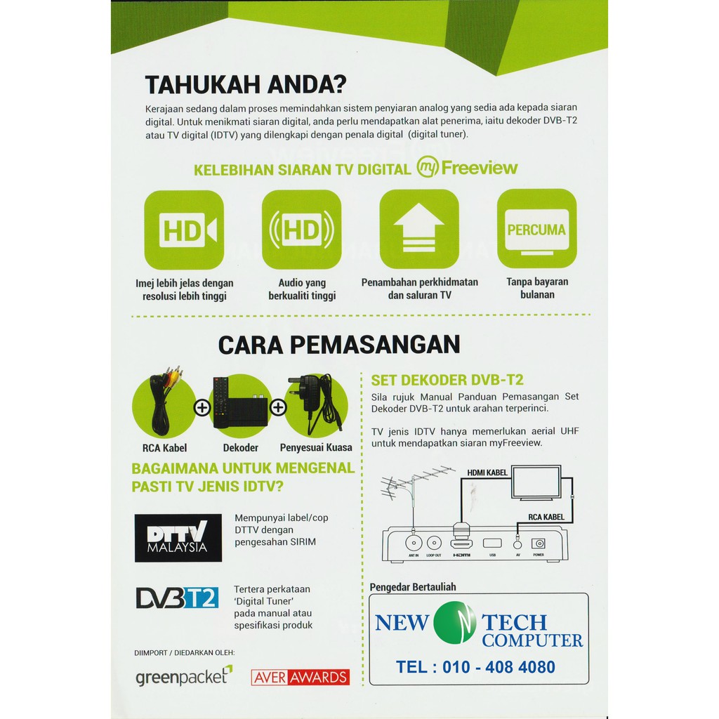 GreenPacket T2000 DVB-T2 My FreeView TV Digital Decoder with MCMC DTTV SIRIM QAS