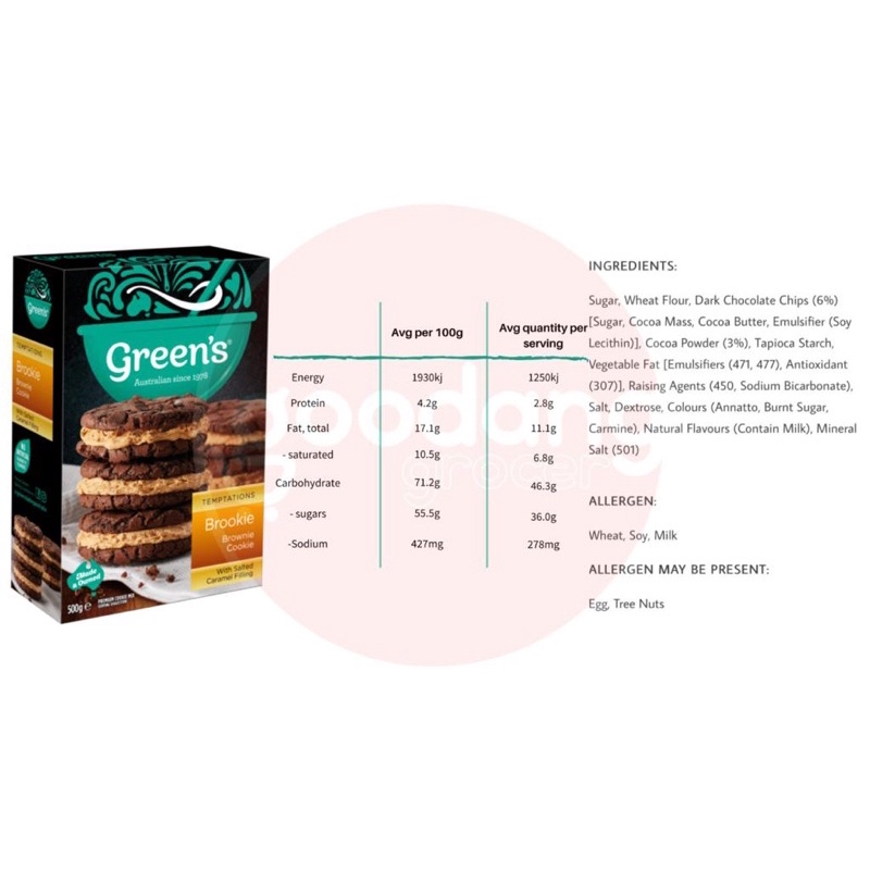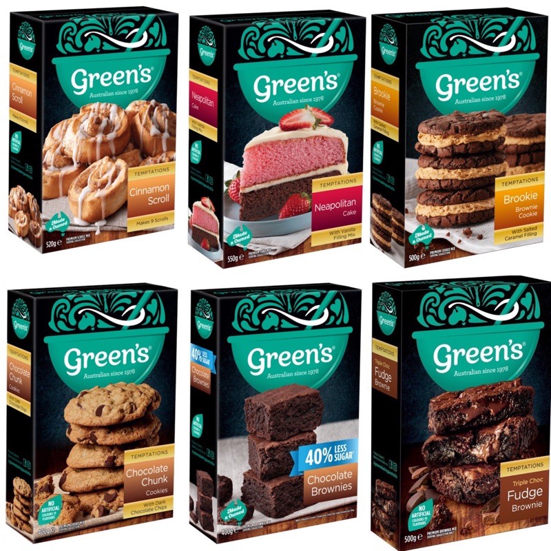 (RESTOCK!)Greens Temptation assorted cake mix cinammon roll, brownies, brookie, cookies. Tepung cake segera premix