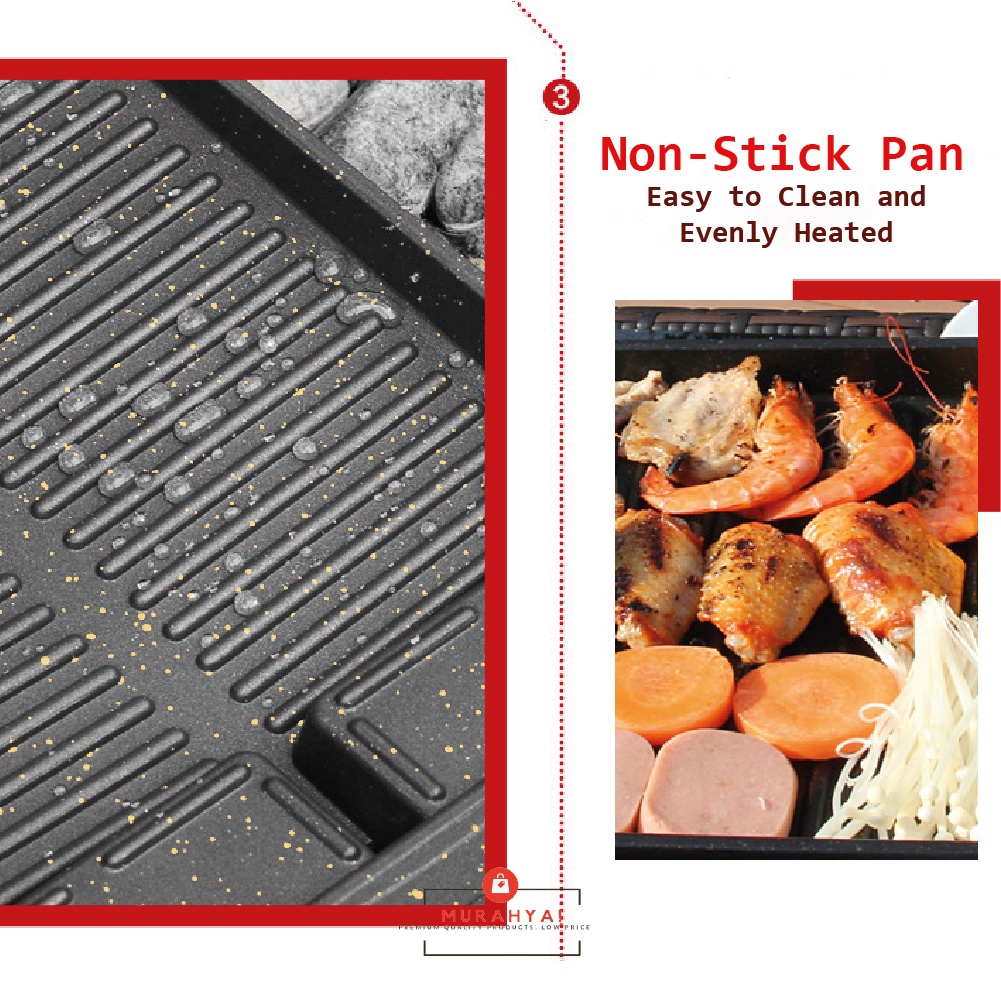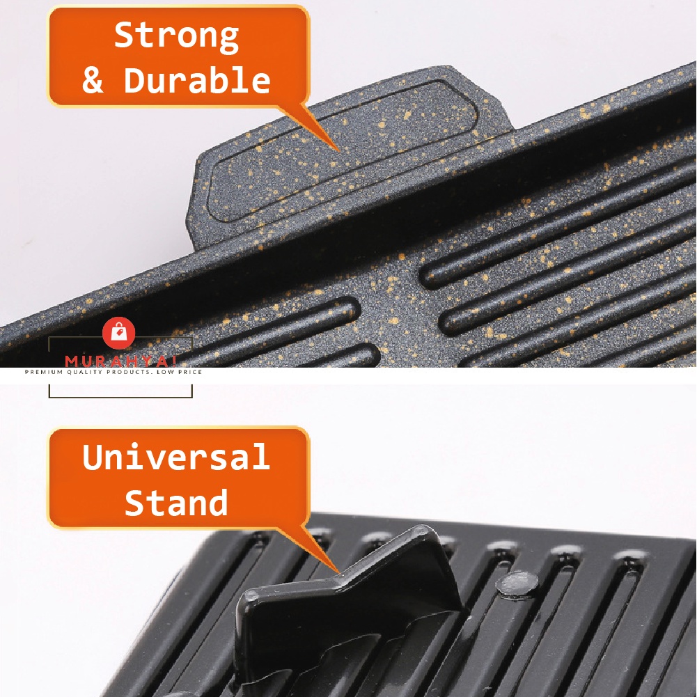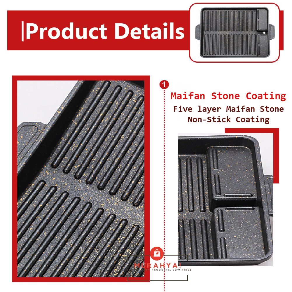Grill pan BBQ grilling plate Kuali gril panggang Non stick Maifan stone coated Picnic Camping Steak Portable roasting